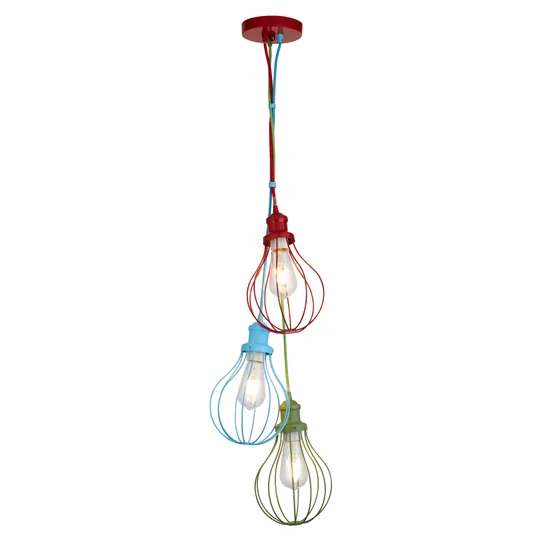 Featuring three brightly painted metal shades in red, blue and green, this pendant adds cheerful, eye-catching style above dining tables, in playrooms, or as a standout feature in modern interiors.