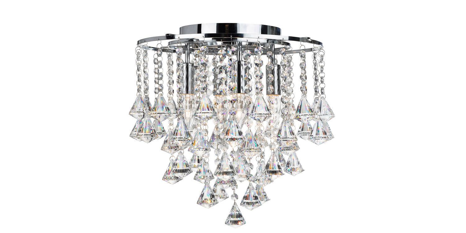 The Dorchester chrome 4 light semi-flush ceiling light with clear crystal buttons and drops is a bold centerpiece for any bedroom, living room or dining room. The four lights are adorned with chunky crystal buttons and drops, which refract the light beautifully. And the chrome finish completes the look of this modern classic. 400mm H x 360mm W x 360mm L 400mm Total Height Bulb Type- E14 Not Included