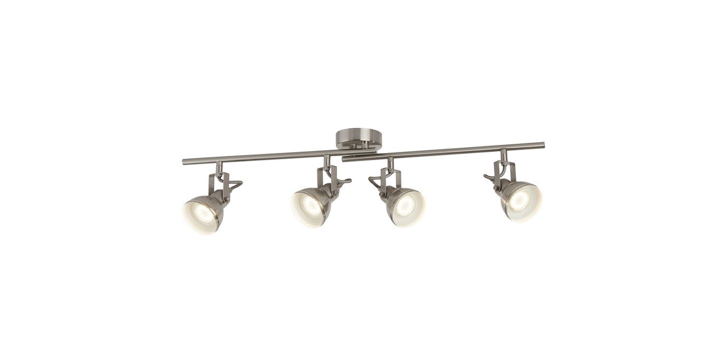 Suspending from a slender split bar, this spotlight bar will shower any kitchen or living room with four bold directional beams of light. This Focus spotlight bar is an industrial inspired fitting and is both stylish and modern. The satin silver metal finish will work with many décor styles. 190mm H x 90mm W x 810mm L 190mm Total Height Bulb Type- GU10 Not Included
