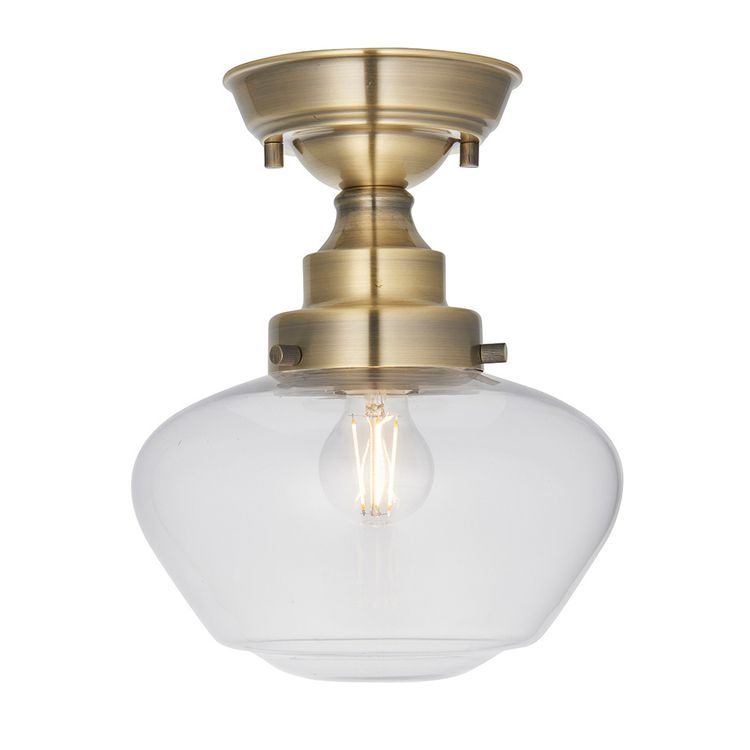 Available in bright nickel, brass and antique brass metal work with opal or clear glass. 10W LED E27 (Required)