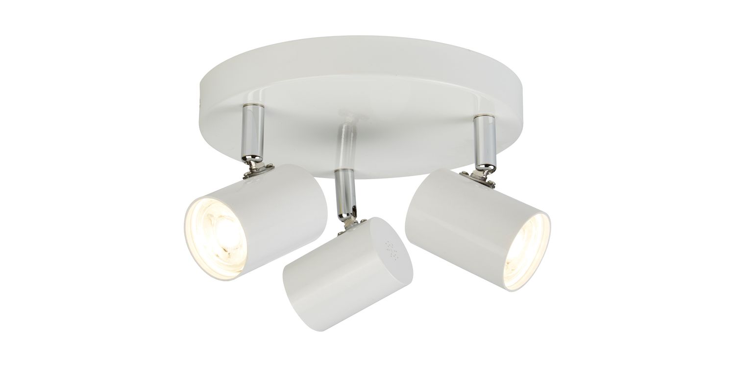 The Rollo 3 light round spotlight is a simple yet stylish way to illuminate any kitchen, living room or hallway. With 3 cylindrical shades housing LED lighting technology on a white metal round ceiling plate, this round spotlight is also energy efficient due to the LED technology. 120mm H x 260mm W x 260mm L 120mm Total Height Bulb Type- LED Intergrated