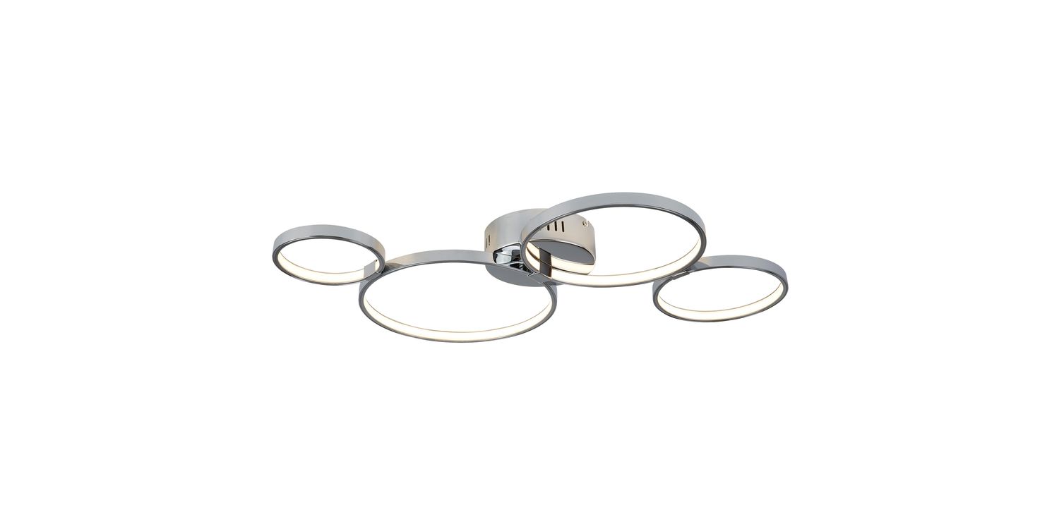 Relax in style by adding this Solexa 4 light ring ceiling flush to your lounge areas. The varying in size rings attach to a chrome base which will rest elegantly from your ceiling. With the lights pointing in different directions, a generous spread of light will brighten your home. LED's use up to 75% less energy and last up to 20 times longer than incandescent bulbs. 74mm H x 500mm W x 750mm L 74mm Total Height Bulb Type- LED Intergrated