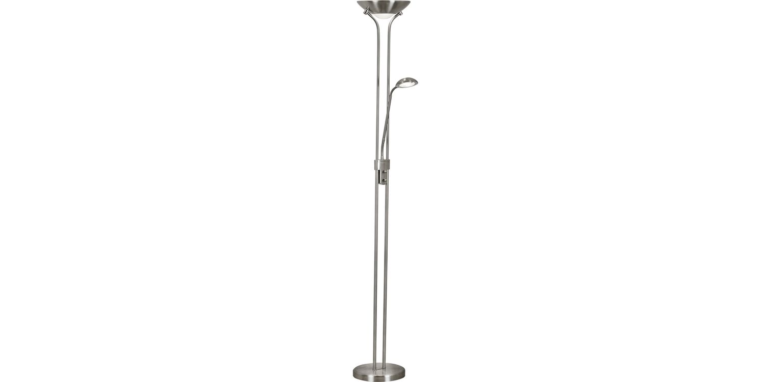 Provide a stylish additional source of light with this Mother and Child floor lamp in satin silver. The dual parts of the long slim body feature two lights; the largest proving a spread of light and the smallest light is adjustable, also using a pull cord. LED's use up to 75% less energy and last up to 20 times longer than incandescent bulbs. 1800mm H x 254mm W x 254mm L 1800mm Total Height Bulb Type- LED Intergrated
