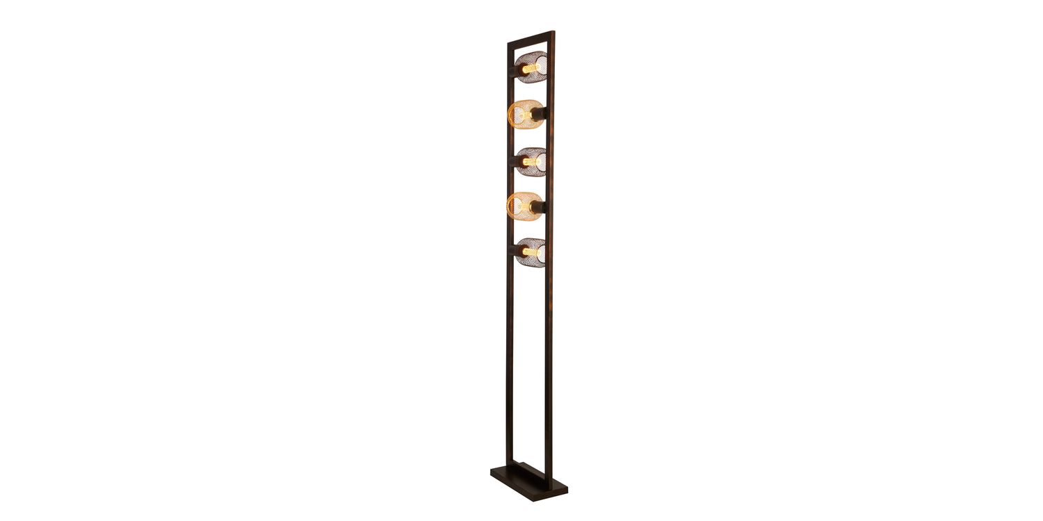The Oblong 5Lt Floor Lamp is a remarkable combination of rustic elegance and versatile design. With its 5Lt configuration and diagonally opposite lamp holders, this floor lamp offers a unique and efficient lighting solution for any space. Crafted from mild steel and wood, the Oblong Floor Lamp showcases a captivating rustic brown colour that adds a subtle touch of warmth to any home décor, serving as a captivating focal point or accent that tastefully draws attention in any room. Designed with a compact and efficient layout, the Oblong 5Lt Floor Lamp optimises the space on your floor. The diagonally opposite lamp holders not only enhance its visual appeal but also provide a practical solution for smaller surfaces or areas where space is limited. This enables you to enjoy the benefits without compromising on functionality or style. Change the look of this floor lamp with our range of decorative lamps. 1600mm H x 300mm W x 150mm L 1600mm Total Height Bulb Type- E27 Not included