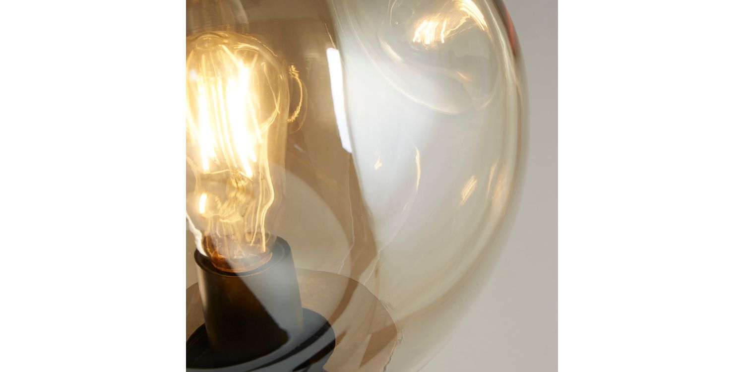With its concave-shaped champagne glass, the Punch Floor Lamp exudes sophistication. With a black metal angular base, it is a perfect addition to elevate the ambiance of any living room, bedroom or even hallway. The black base adds a touch of versatility with various interior styles, whilst the on-trend champagne coloured glass adds a modern feel. Emitting a warm and inviting glow, this stylish floor lamp will enhance both minimalist and luxurious settings, creating a captivating atmosphere in any space. 1500mm H x 250mm W x 300mm L 1500mm Total Height Bulb Type- E27 Not included