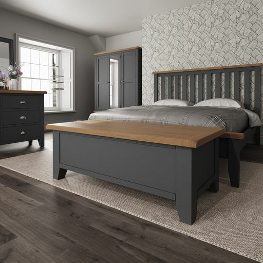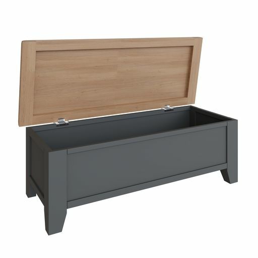 Tay Bedroom-Charcoal Blanket Box 100 x 45 x 50 cmWith chunky contrasting gently lime washed tops and chrome handles, this charcoal painted collection blends classic and Contemporary influences for a style all of it's own.Clean Internal finishLoads of storage spaceLook out for more from this range