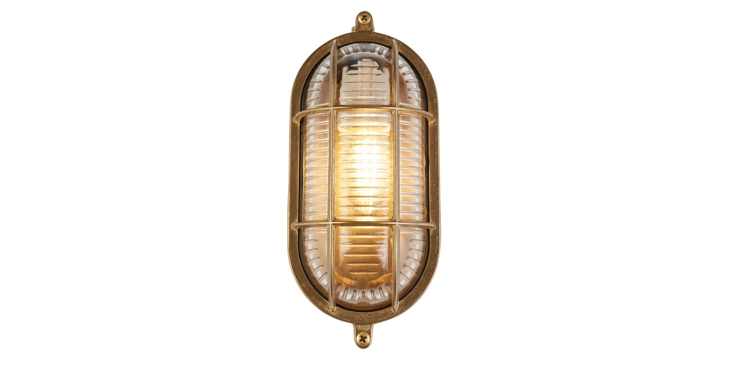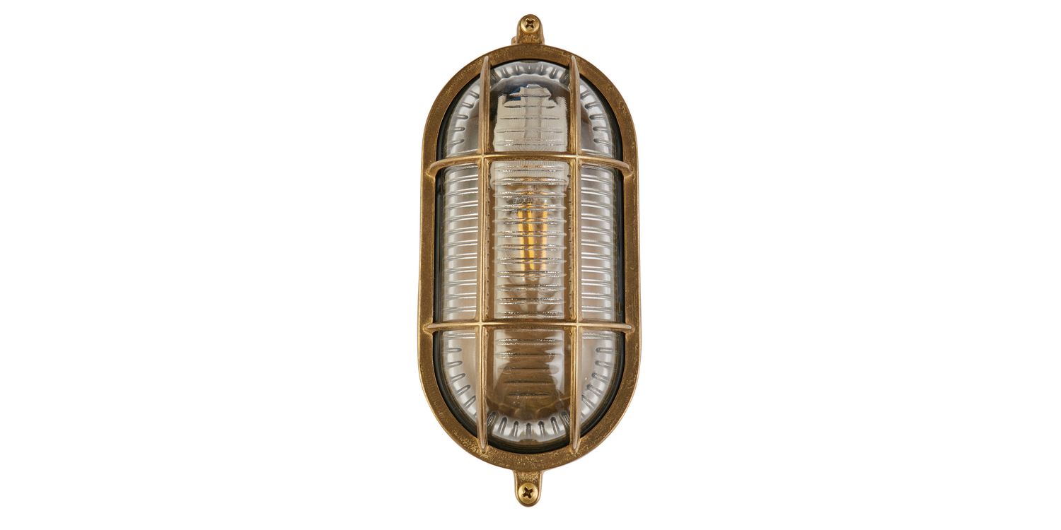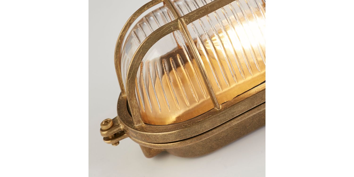 The Bulkhead Outdoor light can be used for both walls and ceilings, and so is the perfect addition to any outdoor space, garden or porch, combining functionality and style with its durable construction from solid brass metal. With its protective cage design and brass colourway, this oval outdoor wall light not only adds visual appeal but also provides practical and safety benefits. The cage acts as a shield, safeguarding the bulb and internal components from accidental damage and the IP64 rating protects from weather conditions such as rain, wind, and debris. 225mm H x 105mm W 225mm Total Height Bulb Type- E27 Not included