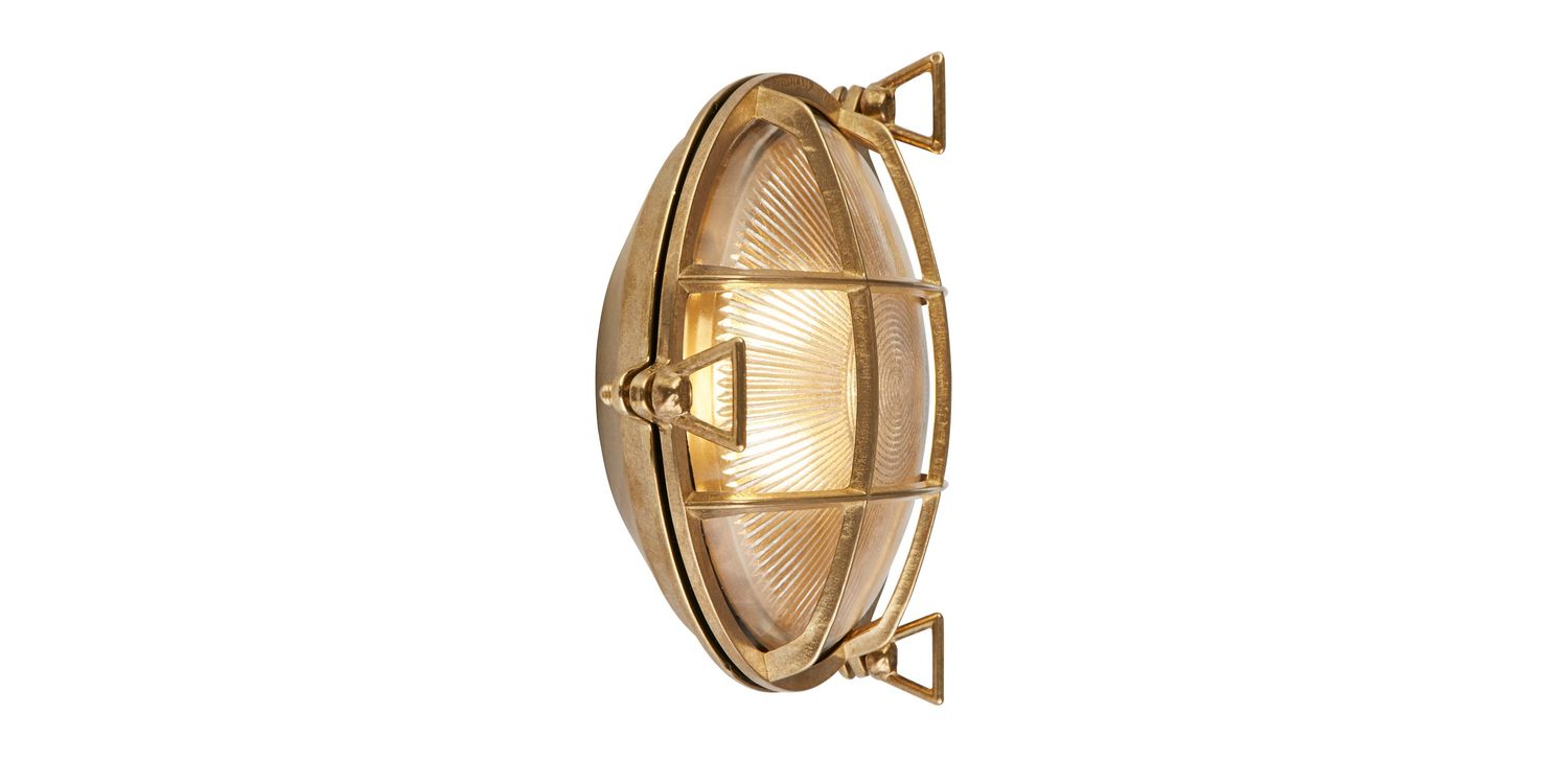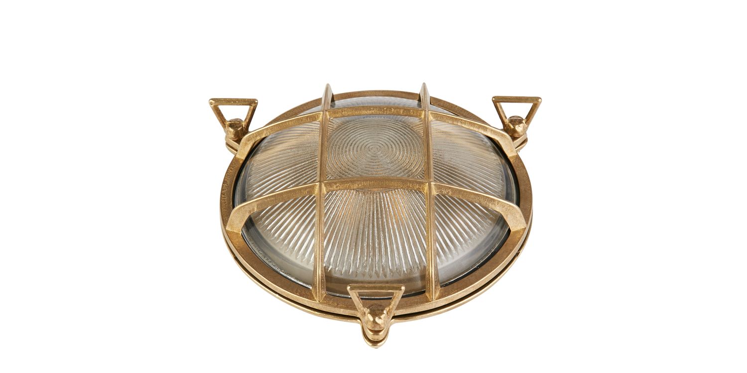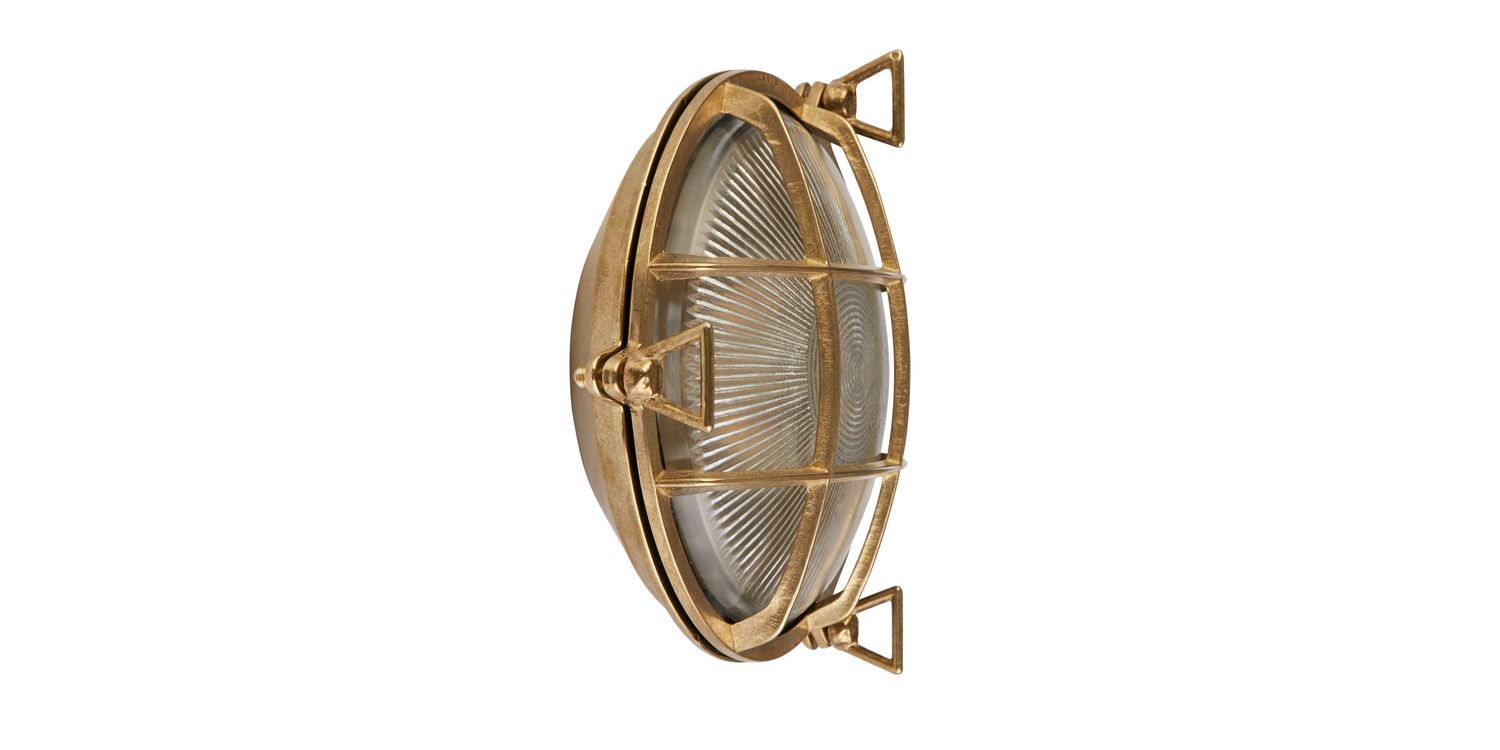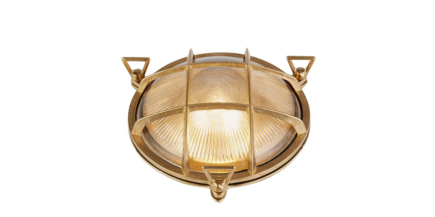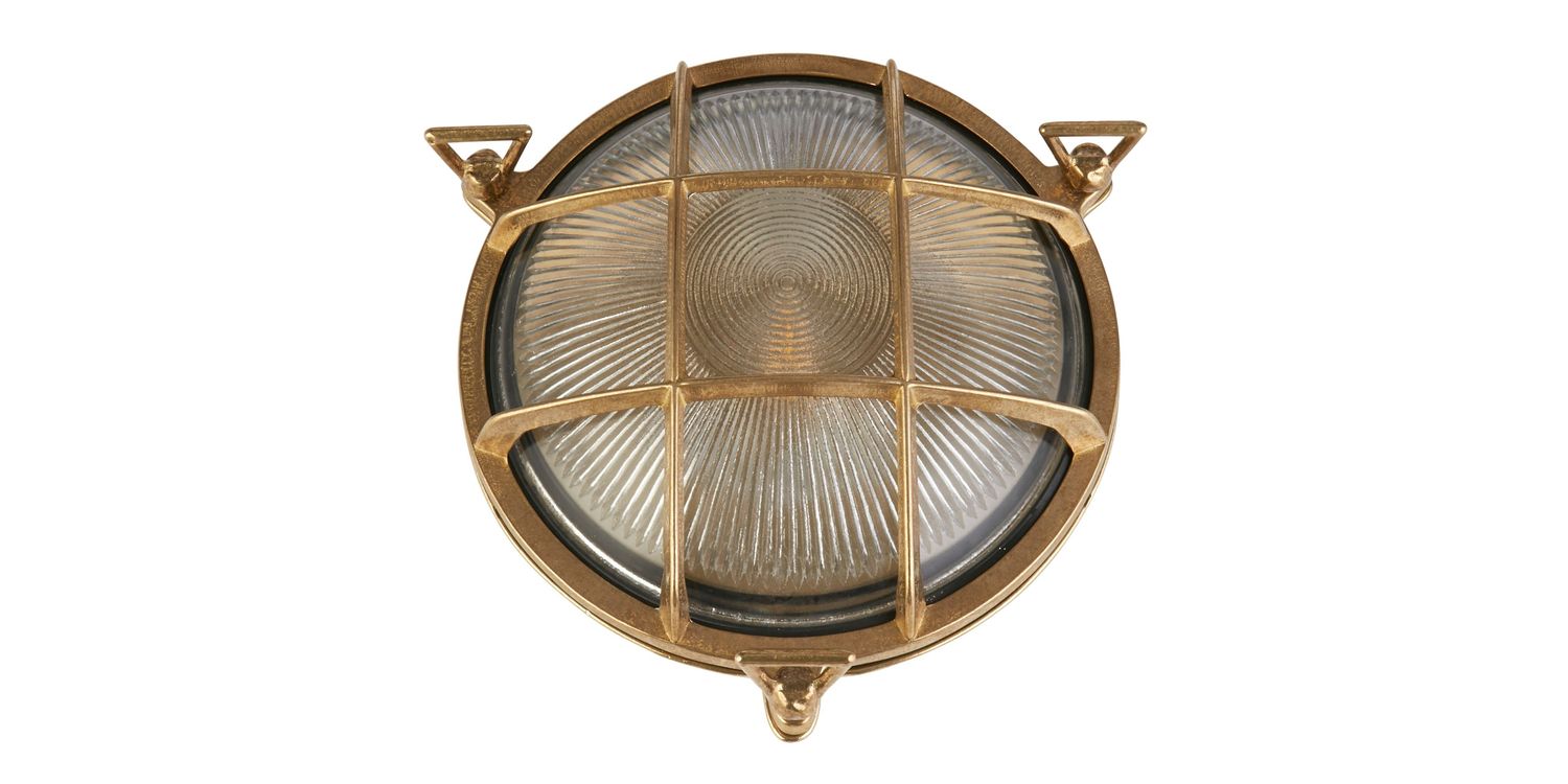 The Bulkhead Outdoor light can be used for both walls and ceilings, and so is the perfect addition to any outdoor space, garden or porch, combining functionality and style with its durable construction from solid brass metal. With its protective cage design and brass colourway, this outdoor wall light not only adds visual appeal but also provides practical and safety benefits. The cage acts as a shield, safeguarding the bulb and internal components from accidental damage and the IP64 rating protects from weather conditions such as rain, wind, and debris.
