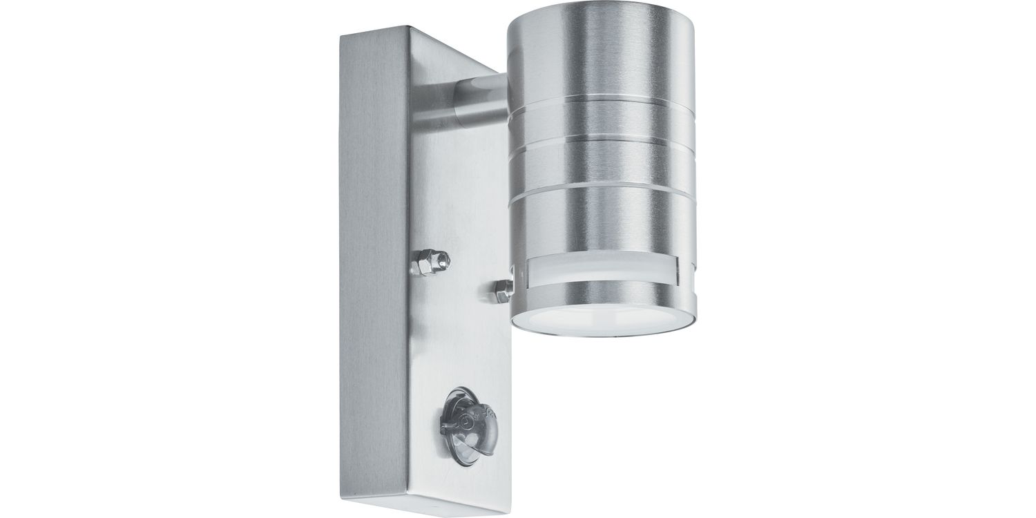 Brighten any porch, balcony or wall in any garden or outdoor space using this sleek stainless steel metal Metro outdoor wall light. The sleek downlight has a glass diffuser which emits a warm white light. This item has a rating of IP44, meaning that it is fully splash proof and would also be suitable for use in a bathroom setting. A PIR sensor is an additional security feature, upon sensing motion, the PIR sensor will cause the light to illuminate. The latest LED technology means this outdoor wall light is energy efficient, assisting with outdoor bills. LED's use up to 75% less energy and last up to 20 times longer than incandescent bulbs. 150mm H x 70mm W 150mm Total Height Bulb Type- GU10