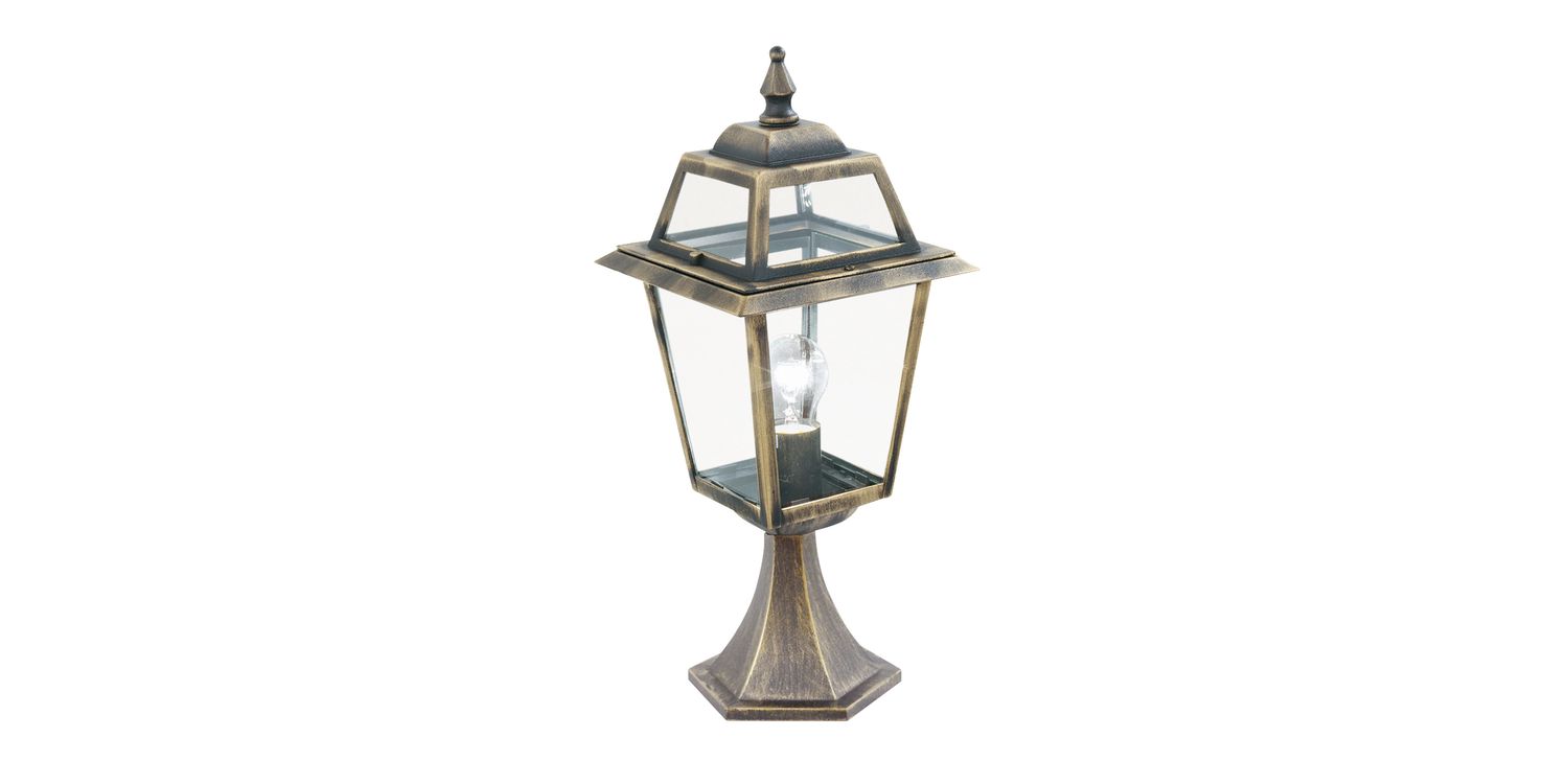 Create a centrepiece for outdoor areas using this 1 Light Outdoor Post with a striking black gold look. Designed to sit on garden walls, it will provide a generous spread of light to gently warm your front or back garden. This item is IP44 rated and fully splashproof to protect against the elements. 500mm H x 210mm W x 210mm L 500mm Total Height Bulb Type- E27 Not included