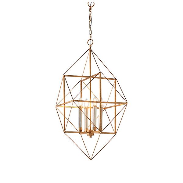 This range is a celebration of sculptural lighting design, utilising increasing angular shapes to create visual interest with gold and silver leaf finish framework, an impressive geometric collection. 4 x 6W LED E14 (Required)