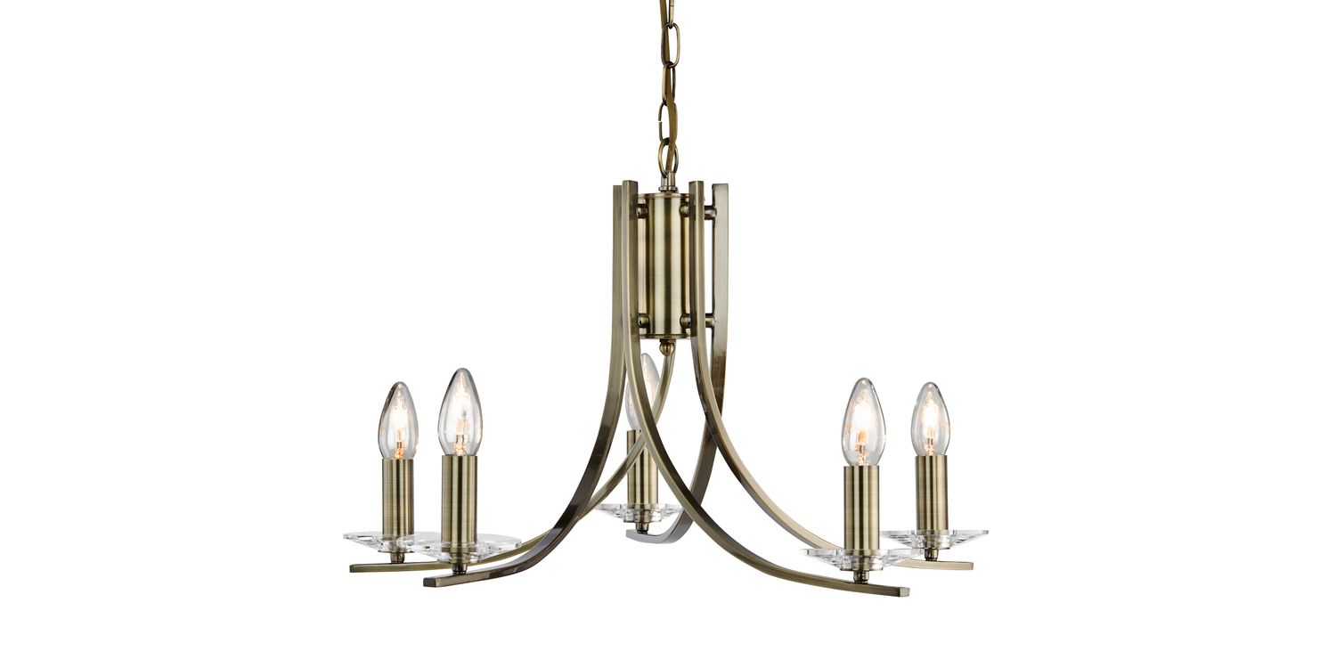 The Ascona antique brass 5 light pendant is a classic design with a modern twist. The antique brass finish is simple, elegant and perfect for any bedroom, living room or dining room, and the five clear glass scones illuminate any room with style and sophistication. Height adjustable, this pendant can work with many ceiling heights and décor styles. 1200mm H x 620mm W x 620mm L 1200mm Total Height Bulb Type- E14 Not Included