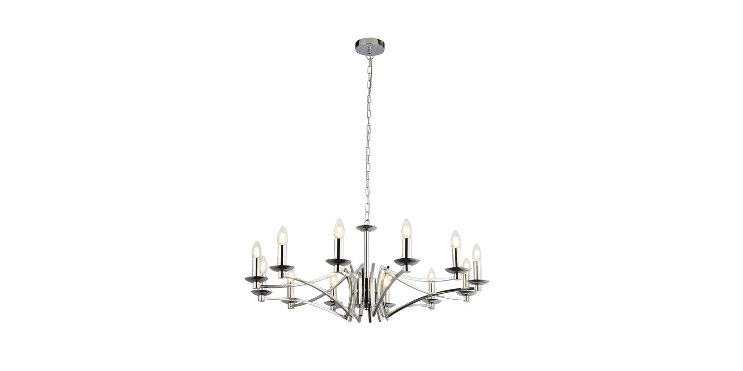 With a highly polished chrome finish and home to 12 landholders for candle lamps, the eye-catching Ascot chandelier has an impressive diameter of 880mm and it's bold, modern design will make it a showstopping piece in the centre of any modern dining room, living area, bedroom or hallway. With the ability to choose the length of the brass chain on installation, this height adjustable pendant with its modern design will be a great focal point of any home. 1500mm H x 880mm W x 880mm L 1500mm Total Height Bulb Type- E14 Not Included