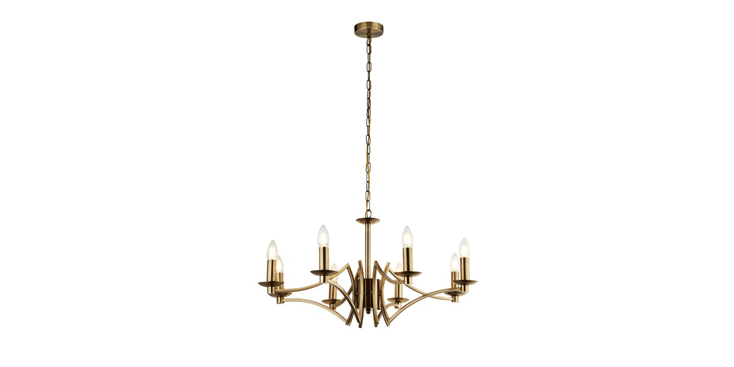 Hung low to create a dramatic effect over a dining table or kitchen island or higher to illuminate an entire living space, this antique brass metal 8Lt Ascot chandelier blends old school charm with modern design. Spanning 720mm in diameter and with 8 lampholders housing exposed candle lamps, this 8 light pendant will be a real showstopper wherever it is used,