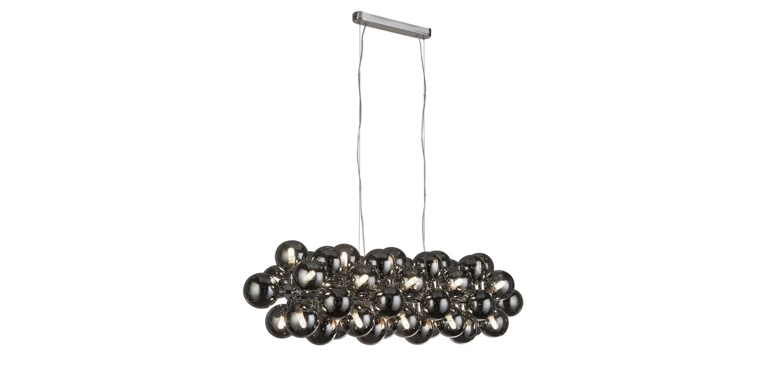 The Berry bar pendant will add a statement finishing touch to any home. The ideal decorative finish to any living room, bedroom or hallway, or used to create an atmospheric glow hung low over a dining table, this bar pendant will elevate any room. With 25 lights surrounded by modern yet minimalist smoked glass balls, the rectangular Berry Pendant will create a show stopping feature in any room. Height adjustable, this pendant can be adapted to different ceiling heights to create the ultimate wow lighting. 1500mm H x 400mm W x 1000mm L 1500mm Total Height Bulb Type- G9 Not Included