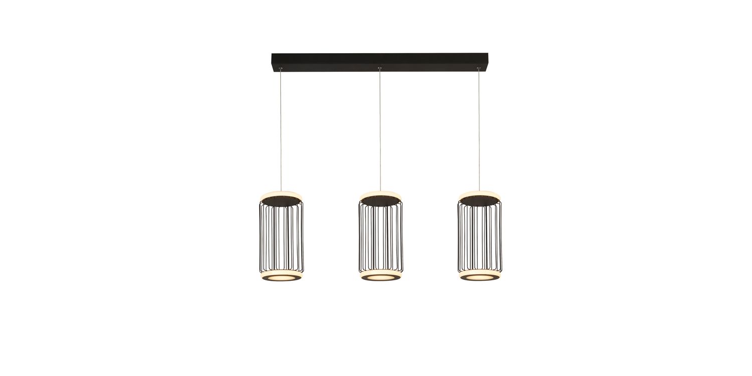 The Circolo 3Lt Cage Bar Pendant, crafted from a combination of black metal and white silicon, showcases 3 shades in a stylish cylinder shape that allows for both downward and upward lighting. Adjustable in height and with a unique design element, it creates a balanced and evenly distributed illumination, making it ideal for various applications. Whether you seek ambient lighting for your living room, or task lighting for your kitchen or dining room, the pendant offers the perfect lighting solution whilst looking incredibly stylish. 1500mm H x 160mm W x 900mm L 1500mm Total Height Bulb Type- LED Intergrated
