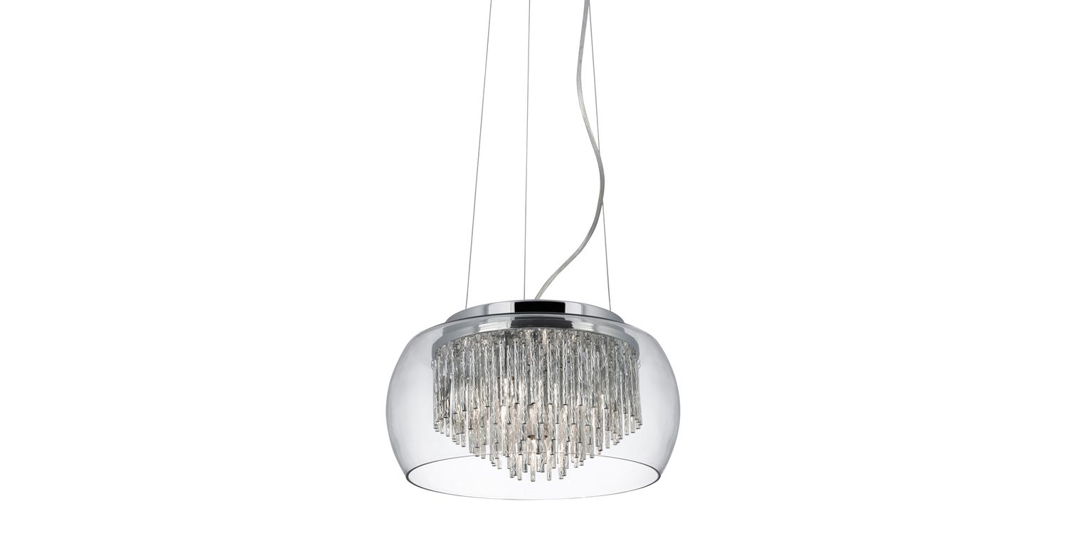 The Curva 4 light pendant has a clear glass shade with aluminium spiral tubes, and will looks stunning in any bedroom, living room, dining room or kitchen. The modern design and ornate spiral tubes create a unique look, with a stylish chrome, aluminium and glass finish, and the four lights illuminate the entire room. The wire suspension can easily be adjusted for different ceiling heights.
