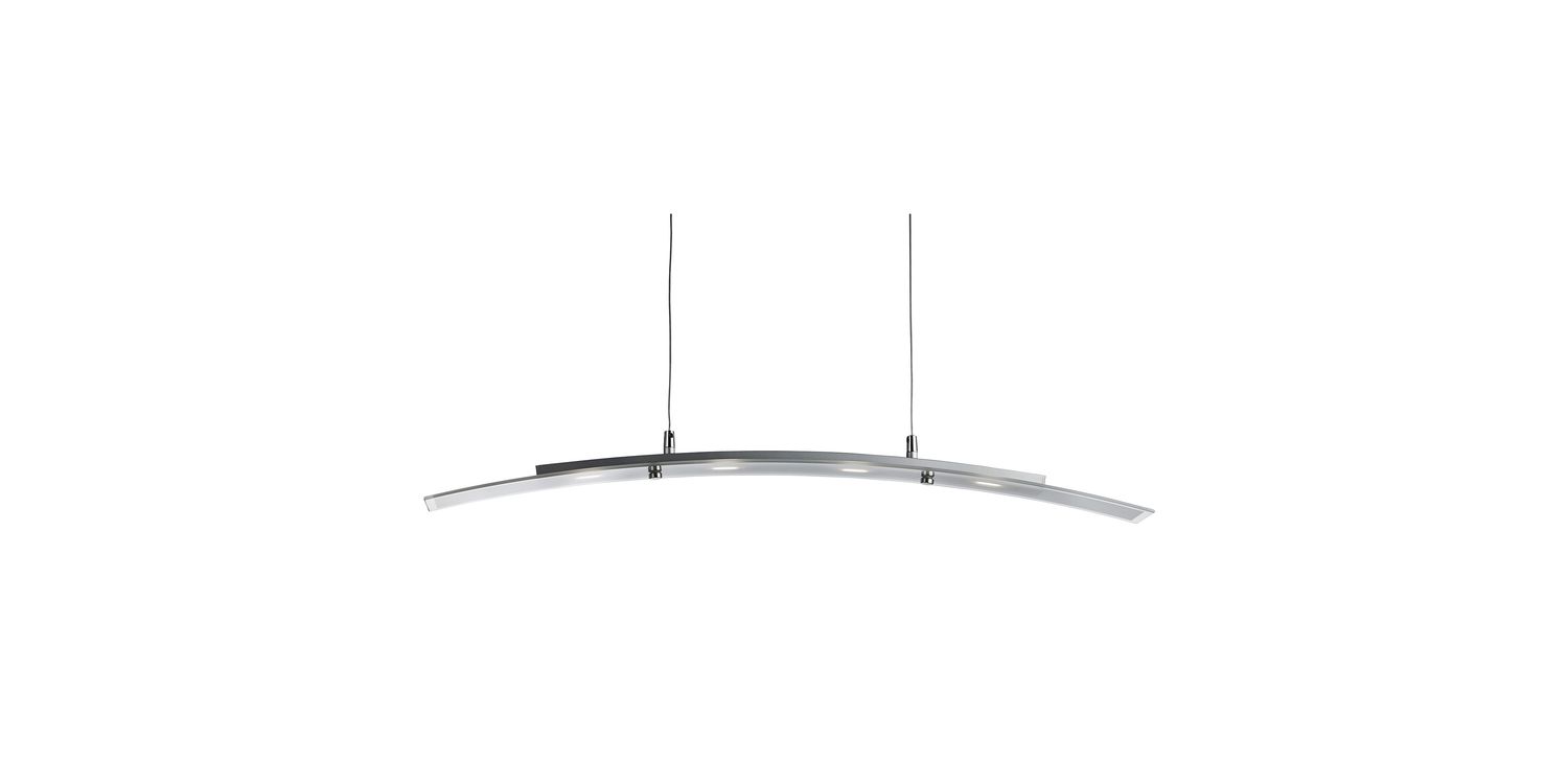 Simple yet stylish, the Curve 4 light pendant is ideal to be hung over a kitchen island or dining table. Crafted using satin silver metal and with frosted glass, this 80cm long pendant will add a contemporary feel to any room. Height adjustable to 1.5m, this LED pendant is also energy efficient, helping to reduce household bills. 1500mm H x 80mm W x 800mm L 1500mm Total Height Bulb Type- LED Intergrated