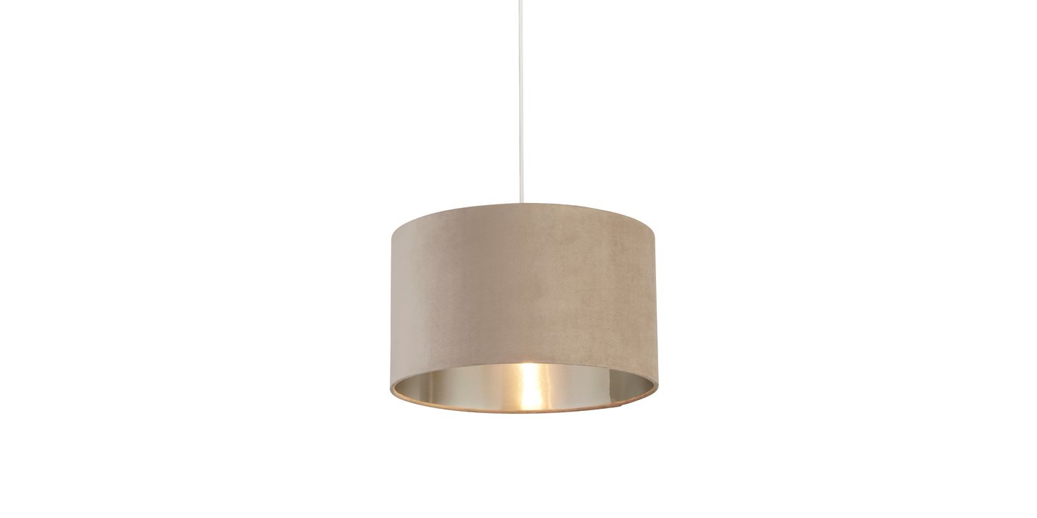 The shade takes on a classic drum shape, featuring a cylindrical design that complements various room styles. Its clean lines and timeless silhouette allow for seamless integration into any decor, effortlessly blending with your existing furnishings. Whether you prefer a traditional or modern aesthetic, the Taupe Velvet Shade with Silver Inner will elevate your space with its versatile design. Measuring 38cm in diameter, it provides ample illumination while serving as an eye-catching centrepiece220mm H x 380mm W x 380mm L 220mm Total Height Adaptable B22 E14 E27
