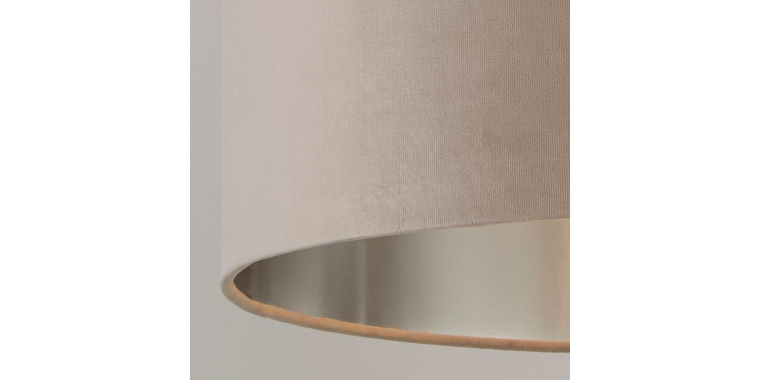 The Taupe Velvet Drum Shade with Silver Inner effortlessly combines opulence with modern elegance. Crafted from mild steel, this fixture showcases a taupe colour combination that exudes sophistication and style.