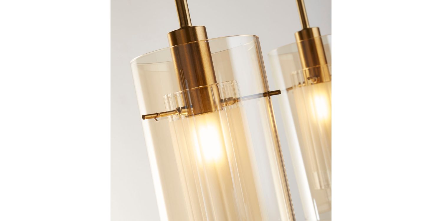 The Duo III 3Lt Bar Ceiling Pendant is a contemporary gem for any dining or living room. Crafted using mild steel and glass in a captivating bronze metal and champagne colour, this pendant offers the advantage of being easily adjustable in height. The glazed shade pattern creates a mesmerising interplay of light and shadow, while the cylindrical glass shades add sophistication. Whether your space leans towards traditional or modern decor, the Duo pendant is a versatile and stylish choice. 1300mm H x 130mm W x 710mm L 1300mm Total Height Bulb Type- E14 Not Included