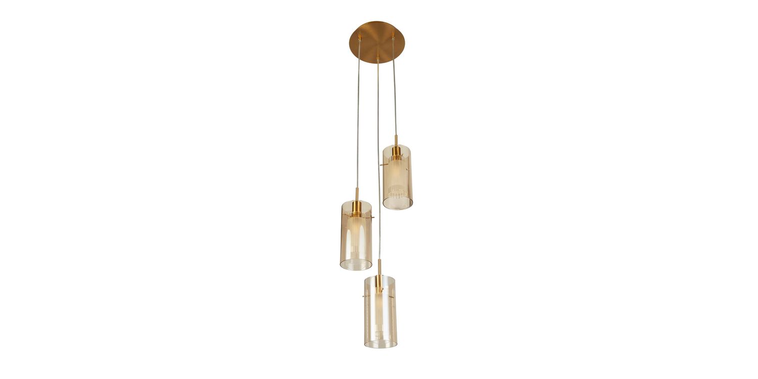 Elevate the ambiance of any living room or bedroom with the captivating and fashionable Duo III Multi-Drop Pendant. Meticulously crafted from durable bronze metal and on trend champagne glass, it effortlessly takes centre stage, seamlessly blending with contemporary interior styles. Customise your lighting experience with its adjustable height feature to create a ceiling light to suit any room. The 3 champagne coloured cylinders in beautiful, on trend champagne glass will elevate any room. 1200mm H x 260mm W x 260mm L 1200mm Total Height Bulb Type- E14 Not Included
