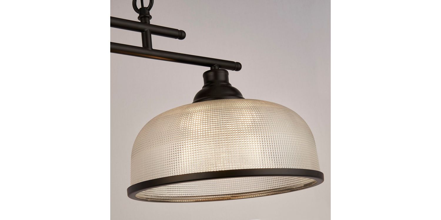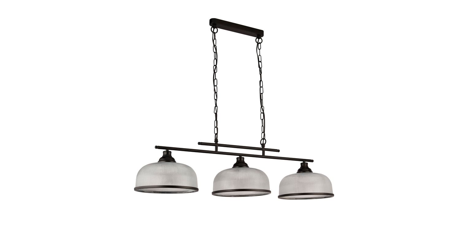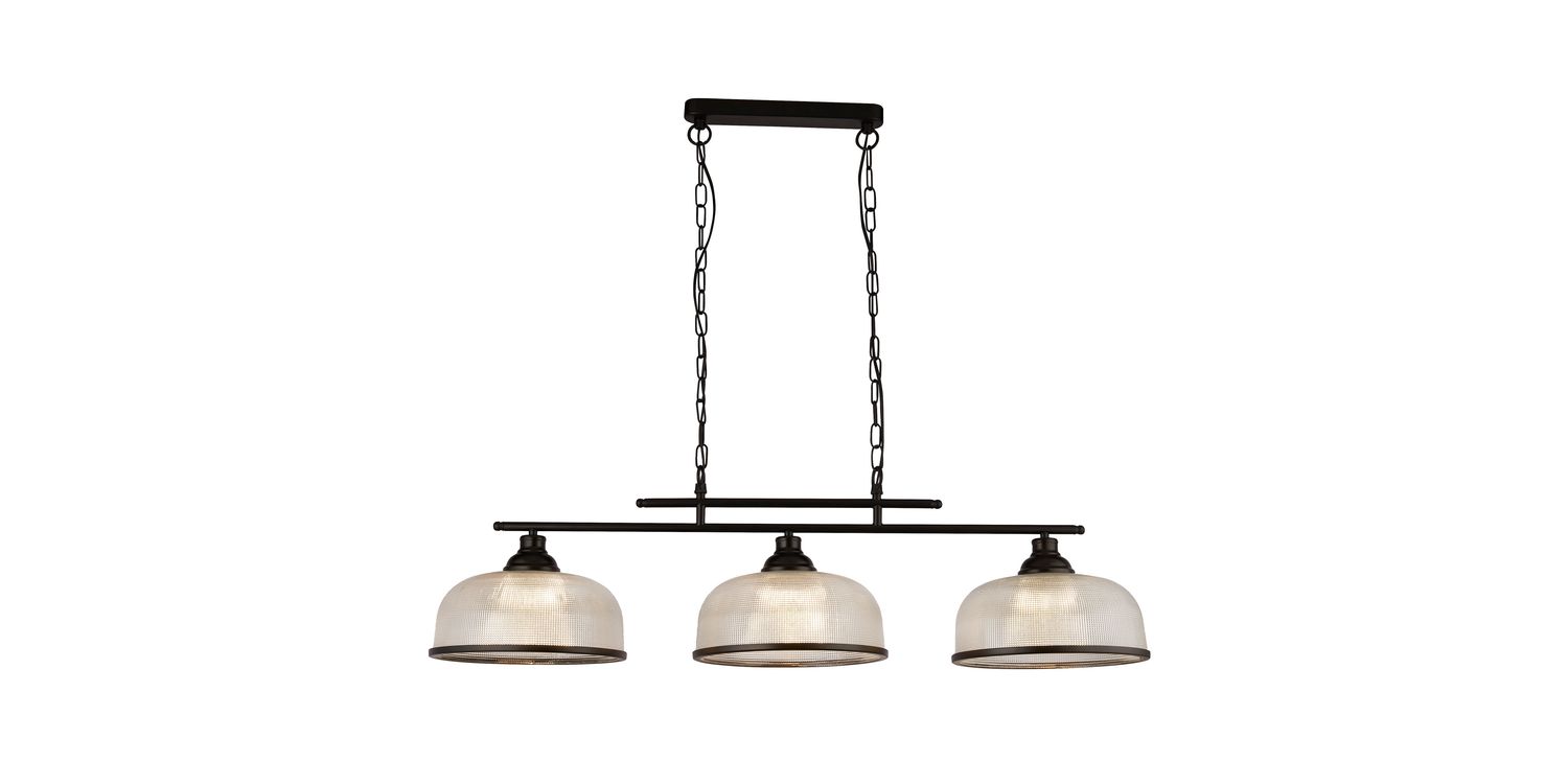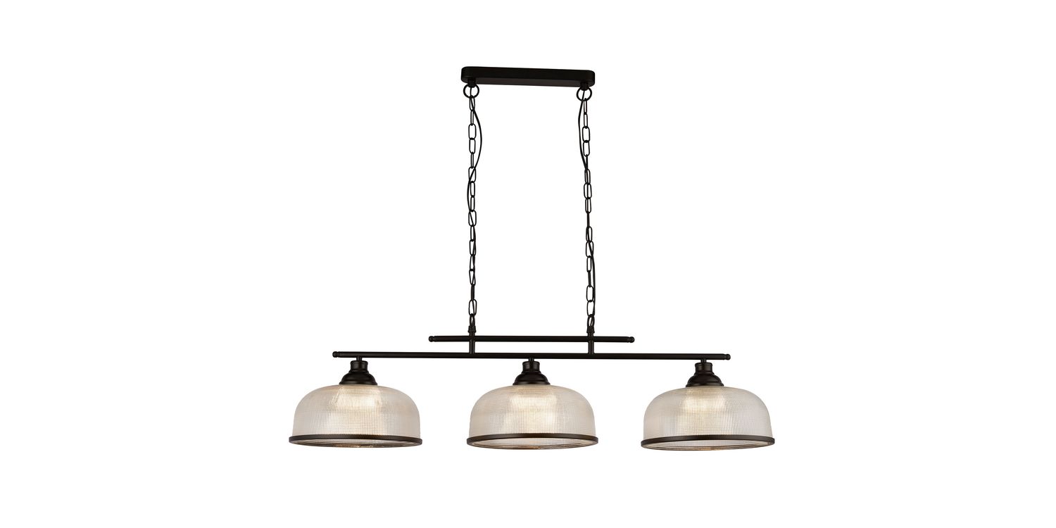 The Highworth 3Lt Bar Pendant is a captivating lighting fixture that is ideal for any kitchen, dining area or living room. It features a sleek combination of mild steel and holophane style glass in a stunning matt black and clear colour scheme. Its versatile style seamlessly complements both modern and traditional spaces while its height-adjustable design allows for personalised lighting. The shade boasts a classy black metal trim, while the holophane style glass shade with a ribbed design adds a touch of elegance. 1200mm H x 270mm W x 990mm L 1200mm Total Height Bulb Type- E27 Not included