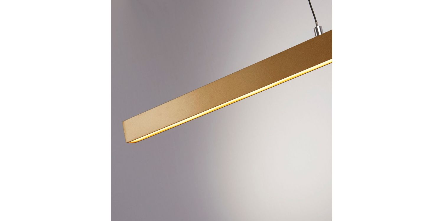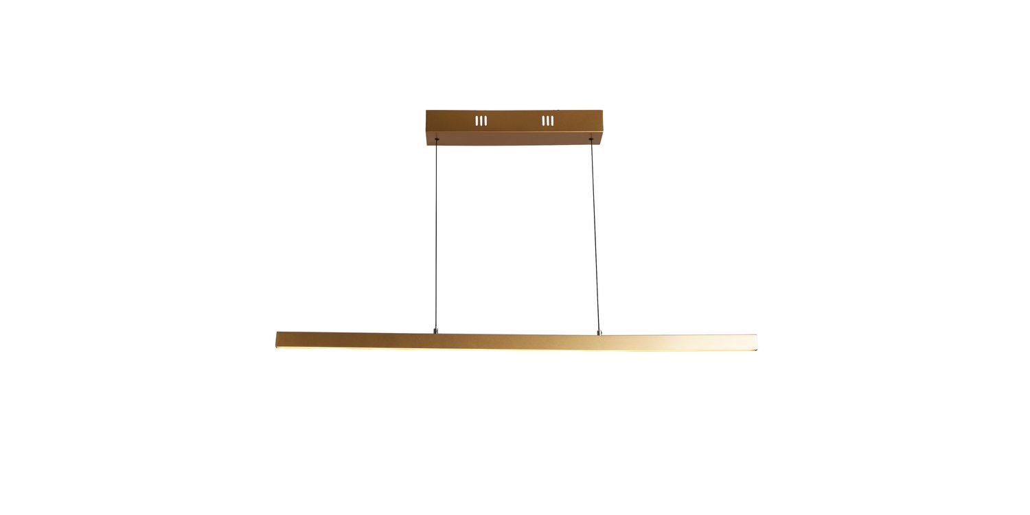 The Layla LED Pendant is a gorgeous lighting fixture that expertly combines fashion and utility. It brings a sense of refinement to any space and has an eye-catching strip designed shade with a painted matt gold finish. Alongside height adjustability, it offers simplicity and energy economy thanks to gesture control and integrated LED lights. Made from acrylic and aluminium, the Layla Pendant is a beautiful addition to modern environments. 1900mm H x 75mm W x 1015mm L 1900mm Total Height Bulb Type- LED Intergrated