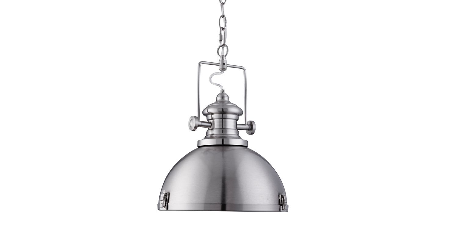 This Louisiana satin silver Industrial pendant light with acrylic diffuser has a solid industrial style with a sleek satin silver finish. The dome shade has stylish, chunky metal features around its rim and its top, with a metal chain attaching it to the ceiling. It looks fantastic in any post-modern living space, and the clear acrylic diffuser creates a nice lighting effect for the entire room. 1500mm H x 310mm W 1500mm Total Height Bulb Type- E27 Not included