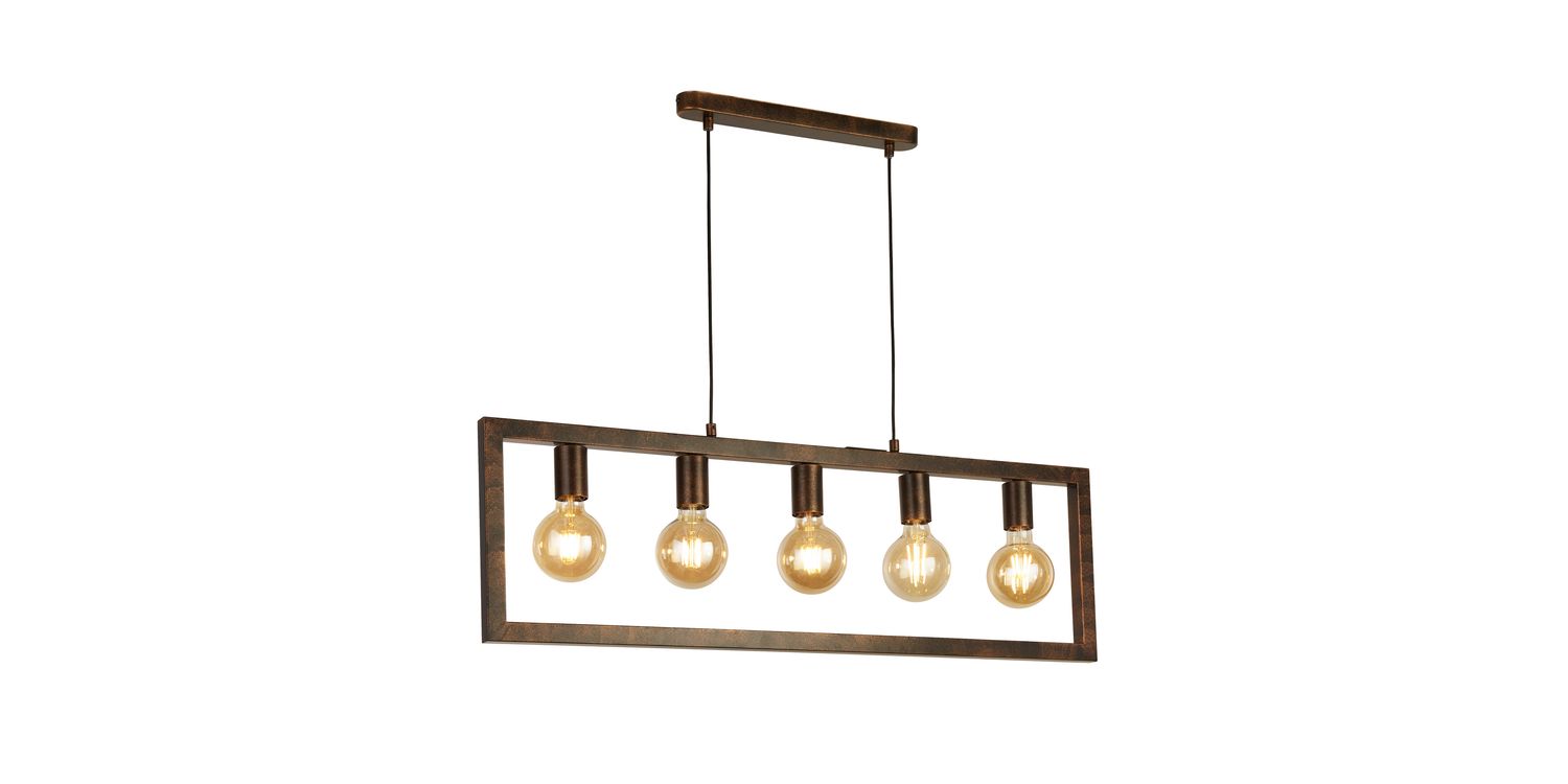 The Oblong 5Lt Pendant is a stunning addition to your kitchen or dining room, bringing both style and functionality to your space. Crafted from rustic brown metal, it features a colour that adds a touch of warmth and sophistication to your decor. With its oblong shape, this pendant becomes an instant focal point in any room. Adjustable in height, its elongated form draws attention and adds a captivating element of interest to your overall decor. The look can easily be change by the use of decorative lamps, see our full range for some ideas. 1500mm H x 50mm W x 1000mm L 1500mm Total Height Bulb Type- E27 Not included