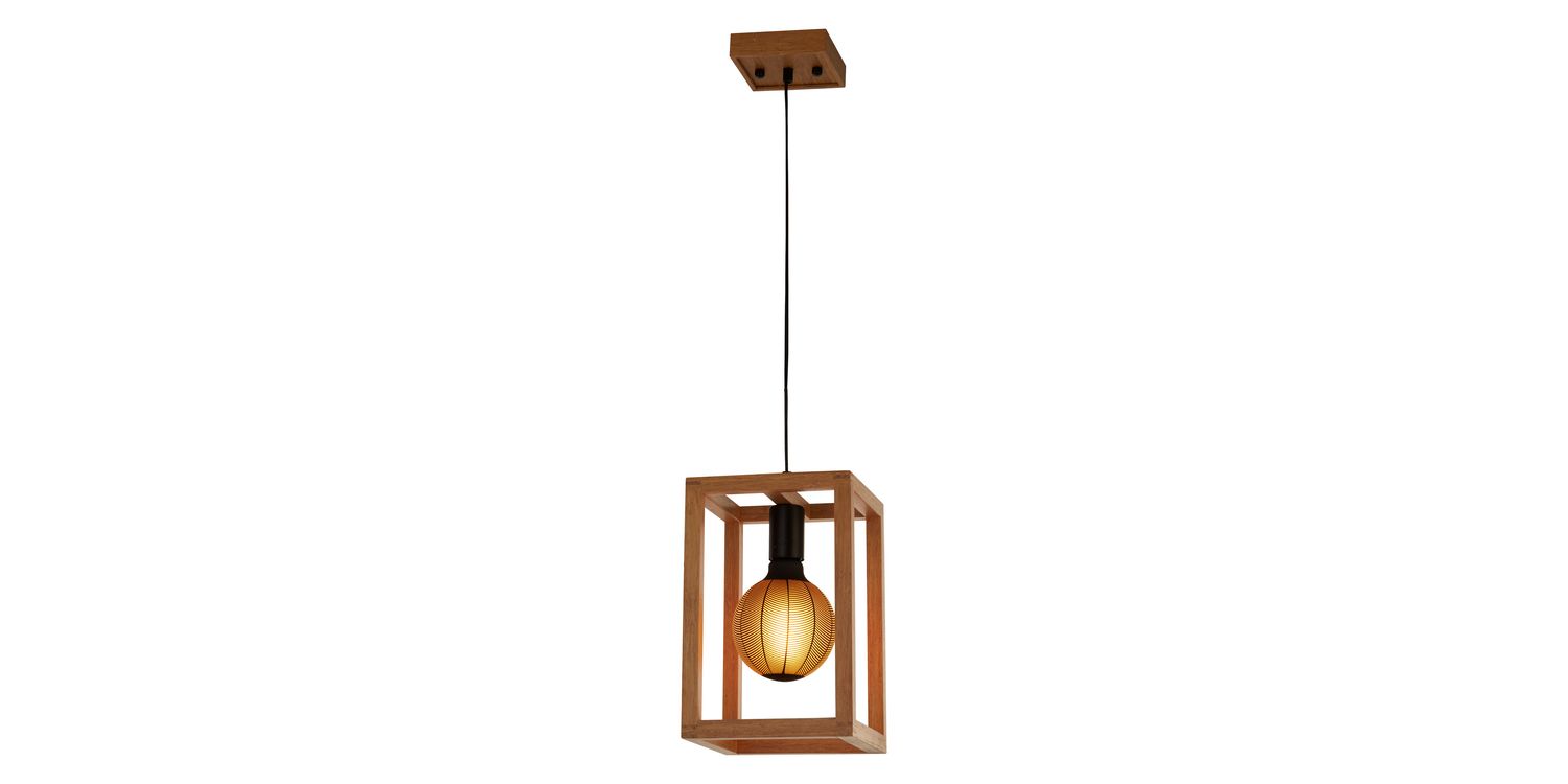 The Square wooden cage Pendant adds a modern yet rustic look to any room. With an exposed bulb within the frame, this light has an industrial feel, and would look great within any décor. 1200mm H x 200mm W x 200mm L 1200mm Total Height Bulb Type- E27 Not included