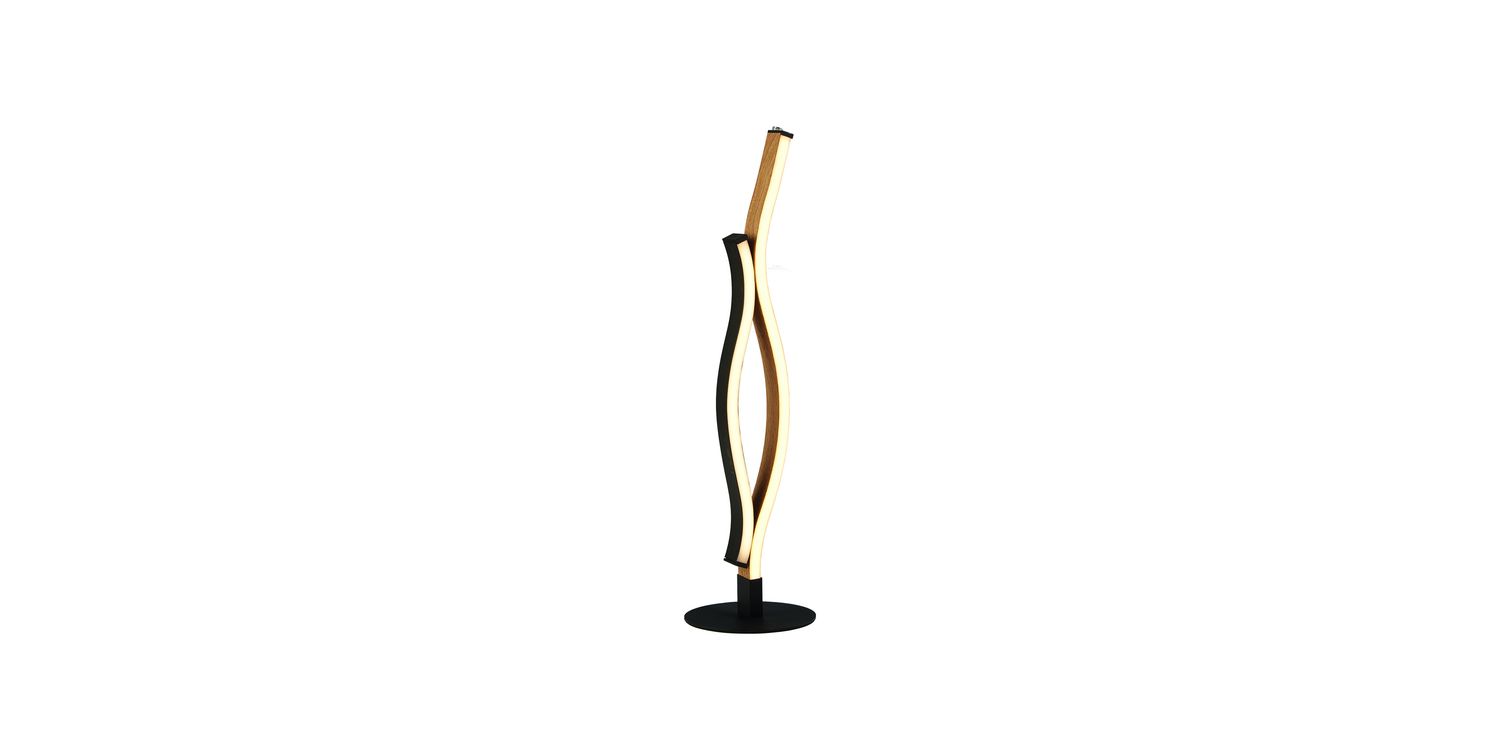 The Bloom Table Lamp is a stunning addition that combines style and functionality to elevate any living room or bedroom. Crafted from a blend of black metal, wood effect and silicon, it offers durability and a touch of elegance. The lamp features a captivating swirl design that adds a distinctive and visually striking element and an artistic focal point that draws attention and enhances the overall aesthetics of the room. The colour temperature of this black and wood table lamp can be changed through the 3 touch change function, fusing style with ease of functionality. 480mm H x 130mm W x 130mm L 480mm Total Height Bulb Type- LED Intergrated