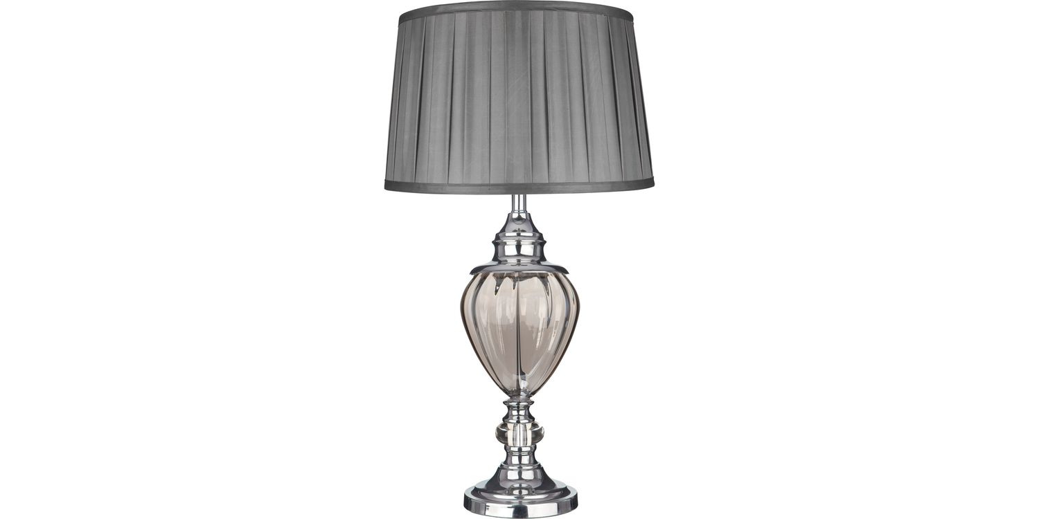Make an impact in your living room, bedroom or study with this stunning Greyson table lamp that exudes class. The pewter colour pleated and tapered shade has a lovely metallic finish which will suit a range of decors. Clear glass forms the curved base and it is complete with a chrome trim. 680mm H x 380mm W 680mm Total Height Bulb Type- E27 Not included