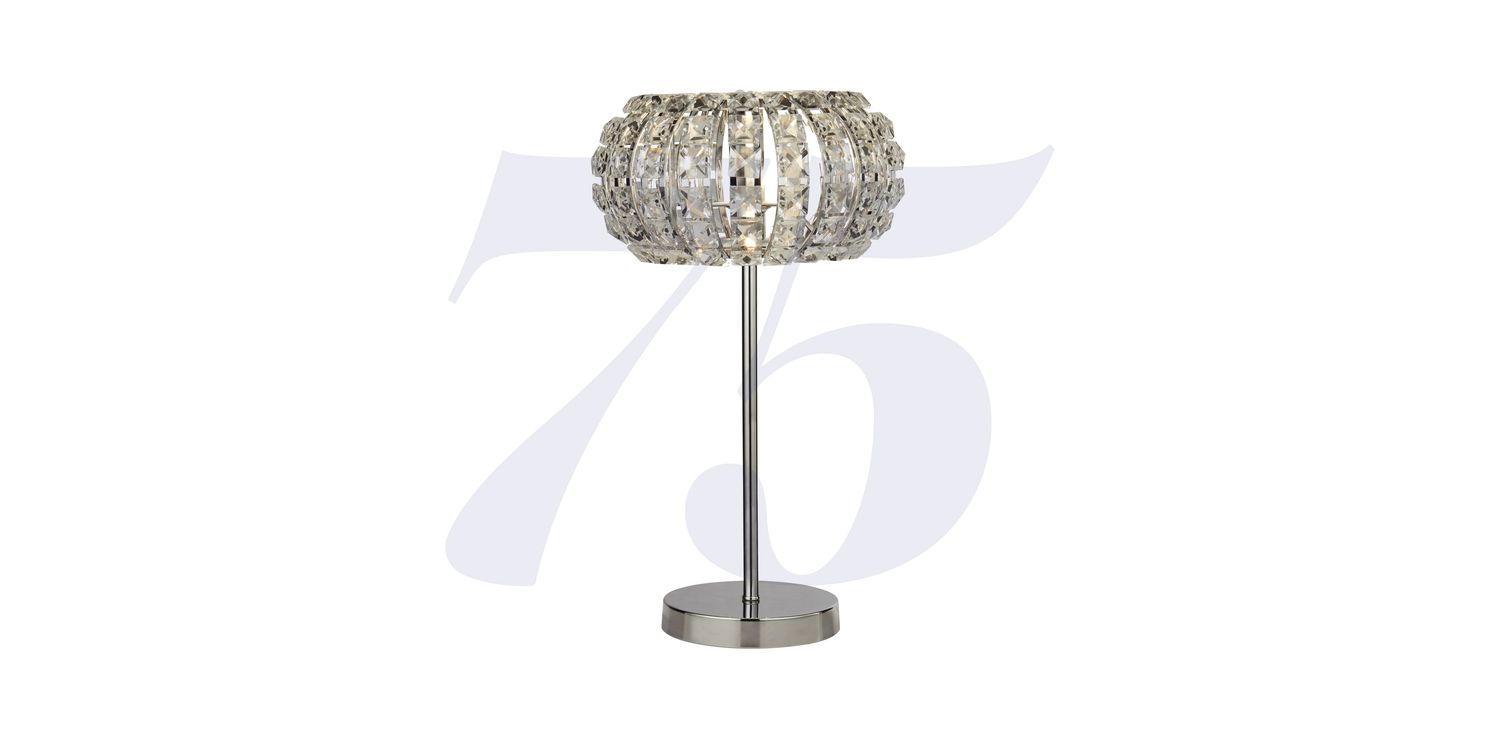 The stunning design of the Marilyn range can bring a vibrant flow in any room. The table lamp has a rounded chrome base that features a crystal glass shade in a curved frame design; that meets a beautifully detailed crystal sand diffusers. The table lamp is ideal for contemporary spaces such as bedrooms, living rooms or hallways. 460mm H x 260mm W x 260mm L 460mm Total Height Bulb Type- G9 Not Included