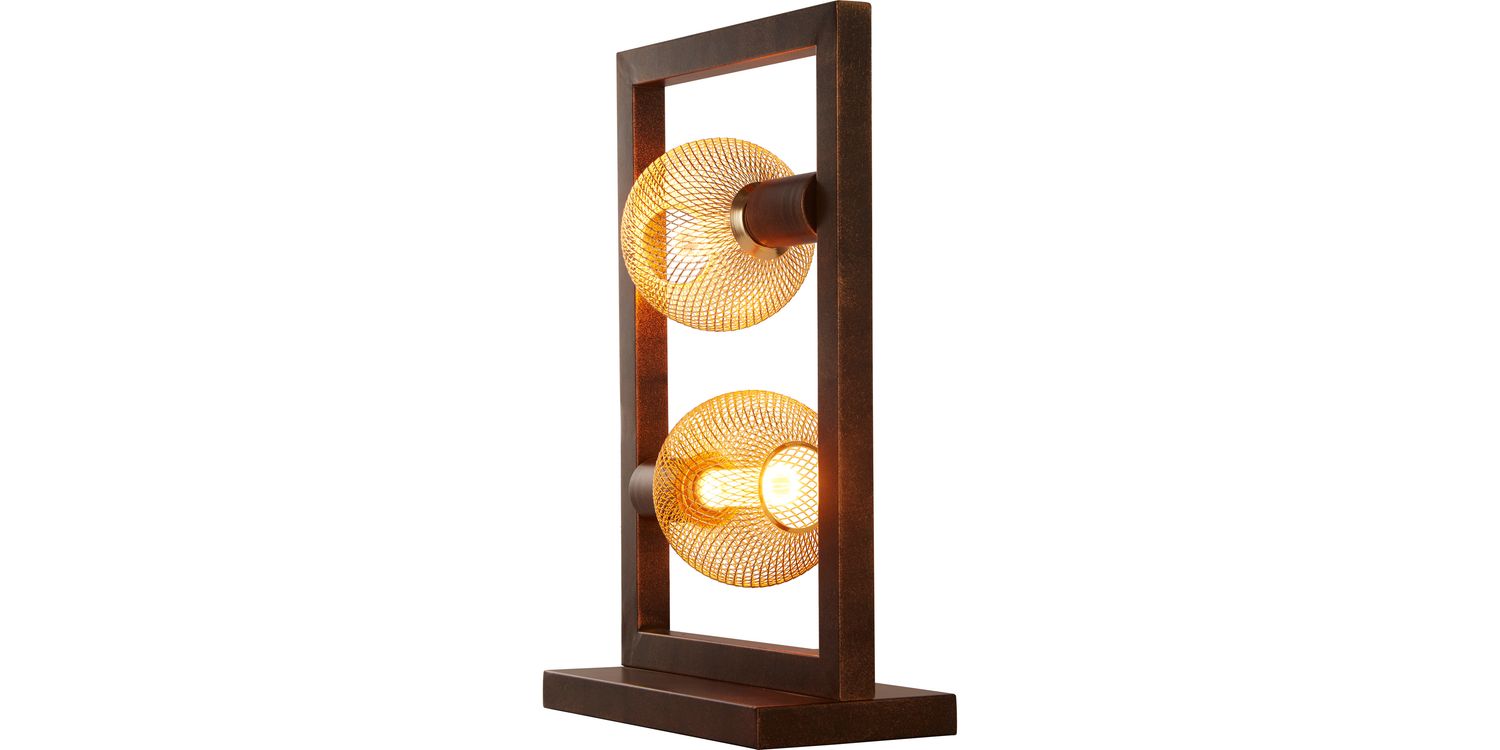 The Oblong 2Lt Table Lamp blends rustic elegance and versatile design, featuring a unique 2Lt configuration with diagonally opposite lamp holders. Its captivating rustic brown colour adds elegance to any space, while its compact layout optimises tabletop space. This metal table lamp is both visually appealing and practical, making it ideal for smaller areas with limited space. The look of this table lamp can be changed with the use of decorative lamps, see our full range for inspiration. 460mm H x 280mm W x 120mm L 460mm Total Height Bulb Type- E27 Not included