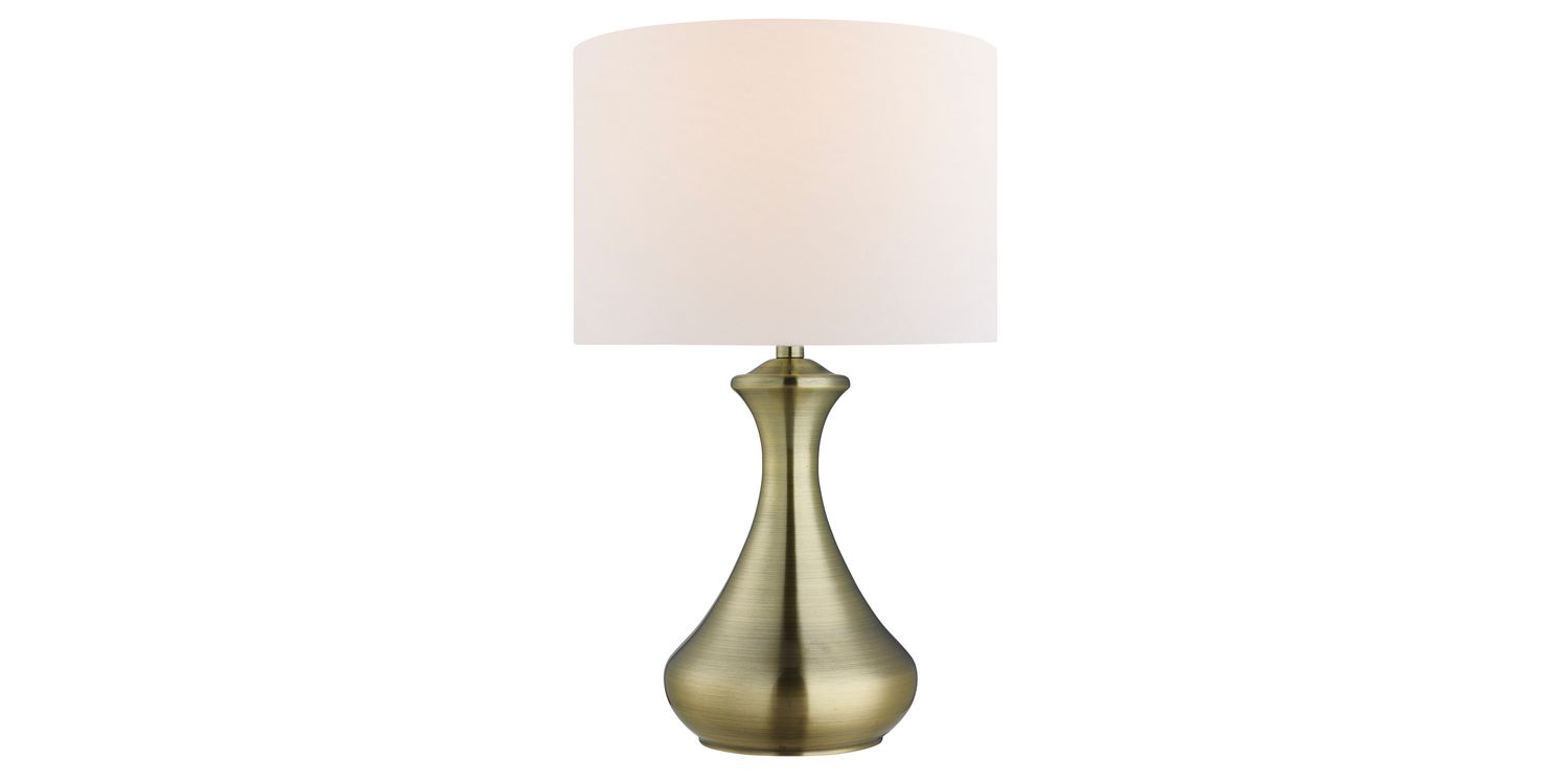 The traditional antique brass finish of the Touch table lamp, with its curved base and understated cream fabric shade makes this table lamp a real statement lighting piece. It's also touch sensitive, with low, medium and high light settings, which is perfect for a bedside table in any bedroom. 400mm H x 240mm W 400mm Total Height Bulb Type- E14 Not Included