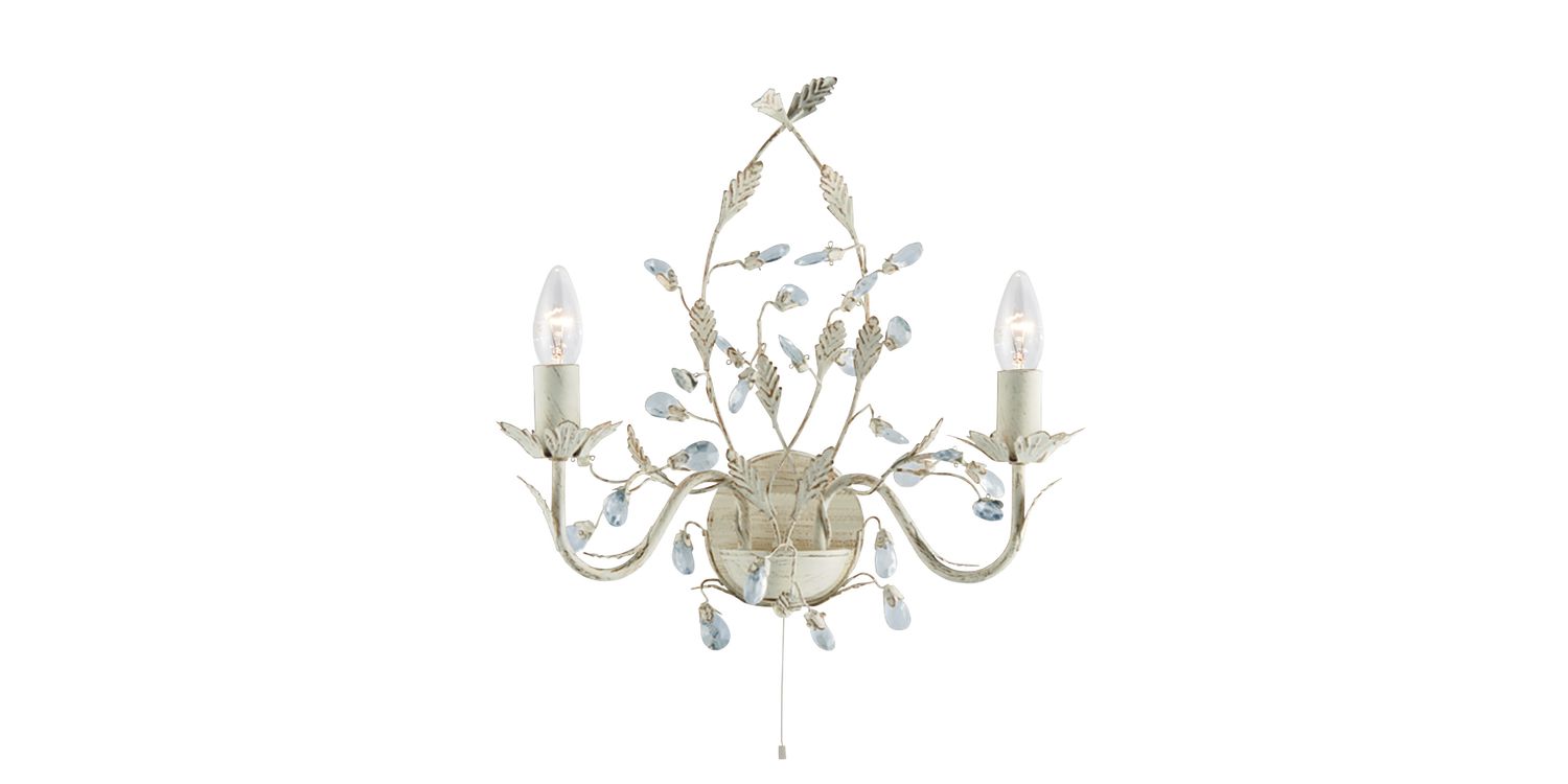 This Almandite cream gold finish 2 light wall bracket with crystal dressing looks beautiful on any wall of your bedroom, living room or dining room. The traditional cream and gold finish gives the light a classic look with warm lighting effects, combined with the intricate crystal dressing to create a relaxing atmosphere.