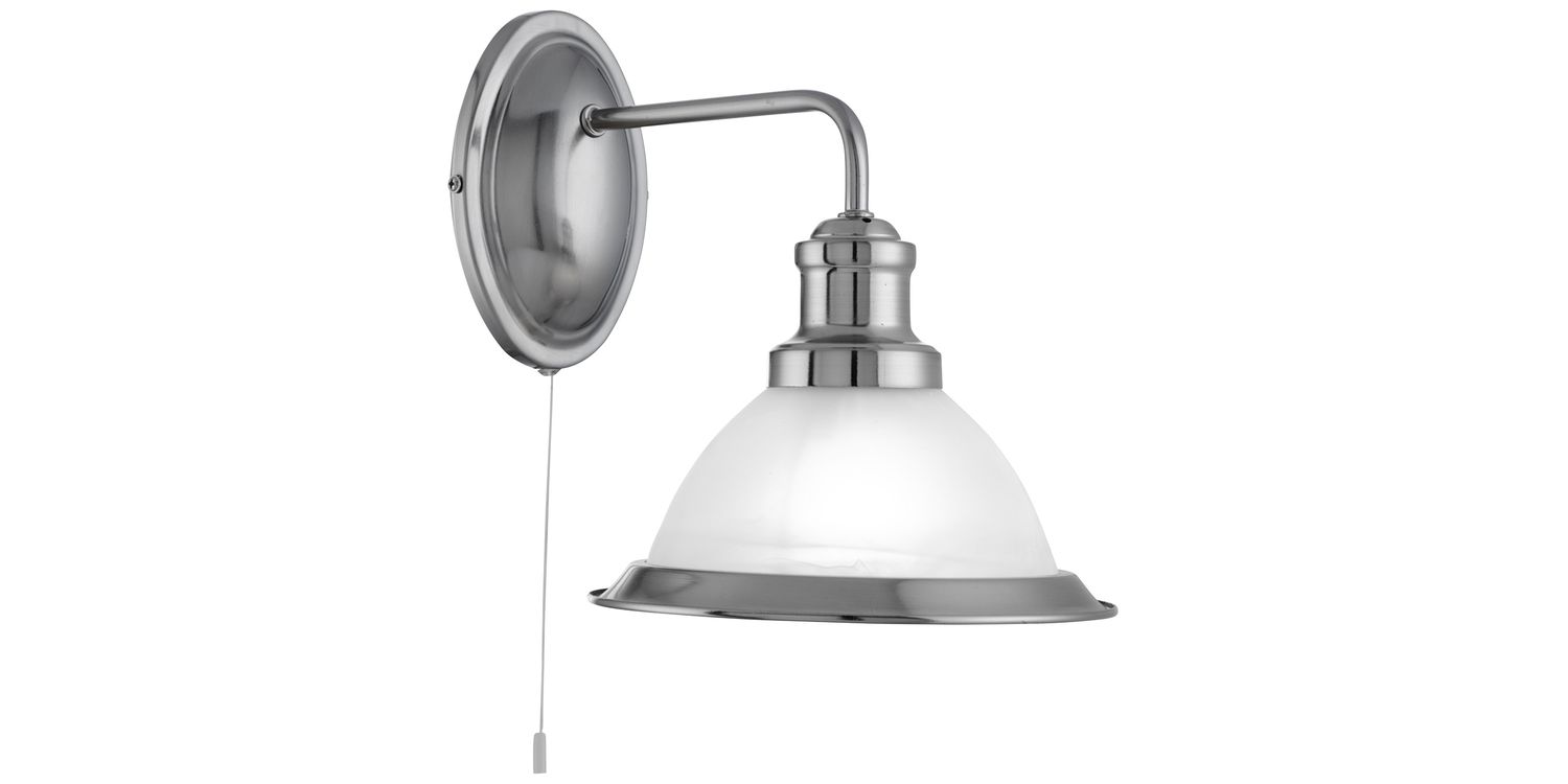 This Bistro satin silver wall light with acid glass shade has a simplistic look that will add a retro feel to any dining area. Reminiscent of the style of classic diners and bistros, the wall light comprises of a classic art deco shade finished in a sleek satin silver, with acid glass to provide clean lighting effects. This wall light has a oval shaped satin silver wall bracket and brings a distinctive and elegant style to any setting. 250mm H x 200mm W 250mm Total Height Bulb Type- E27 Not included