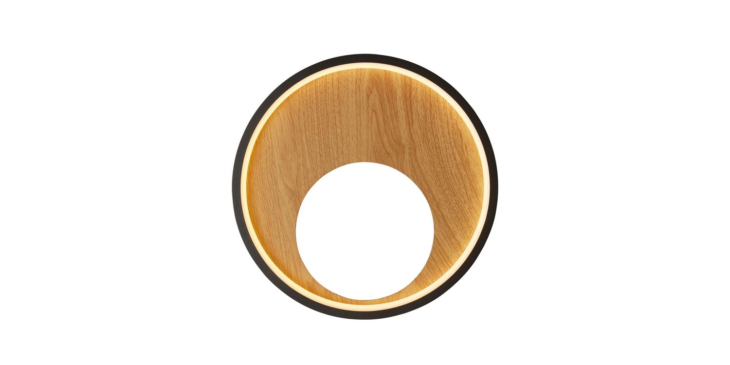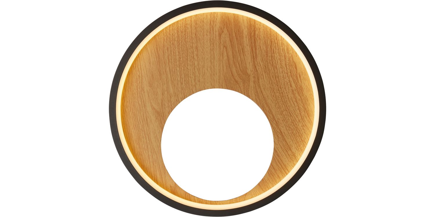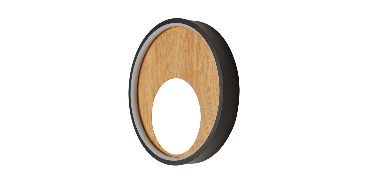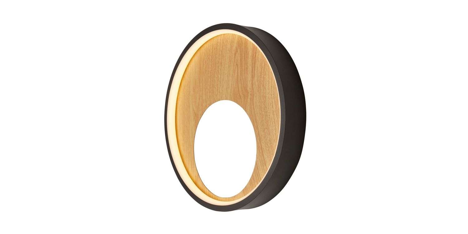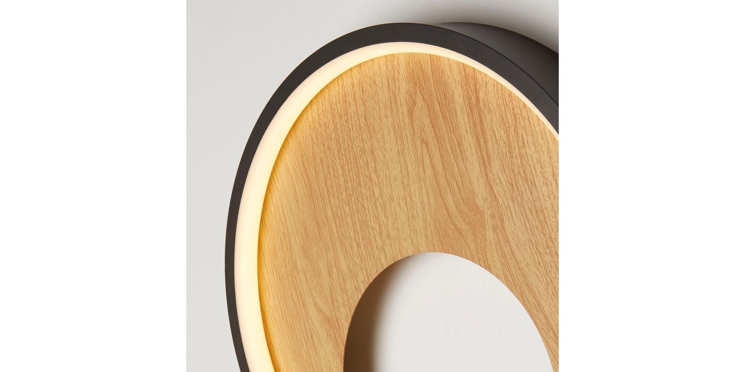 The Curio LED Wall Lamp fuses contemporary style with organic warmth. It provides aesthetic appeal and establishes a distinctive focal point with its black finish and wood effect. Numerous interior aesthetics can be complemented by its adaptable style. Lighting is effectively provided by the inbuilt LED. A touch of elegance is added by its matt material ring-shaped shade. This elegant and classic wall lamp will create a warm and welcoming atmosphere in any home. 300mm H x 300mm W 300mm Total Height Bulb Type- LED Intergrated