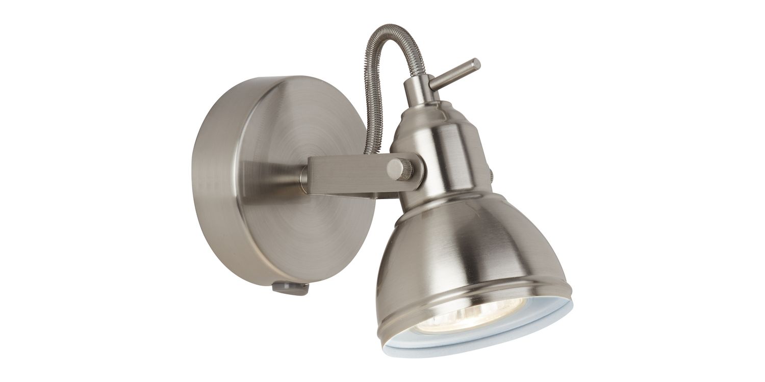 Highlight any interior space using this Focus industrial inspired spotlight wall light. This wall luight contains one light and a satin silver design for a sleek finish. The head is fully adjustable, which is ideal for providing a directional source of light. View as a set with further items from the Focus collection. 130mm H x 90mm W 130mm Total Height Bulb Type- GU10 Not Included