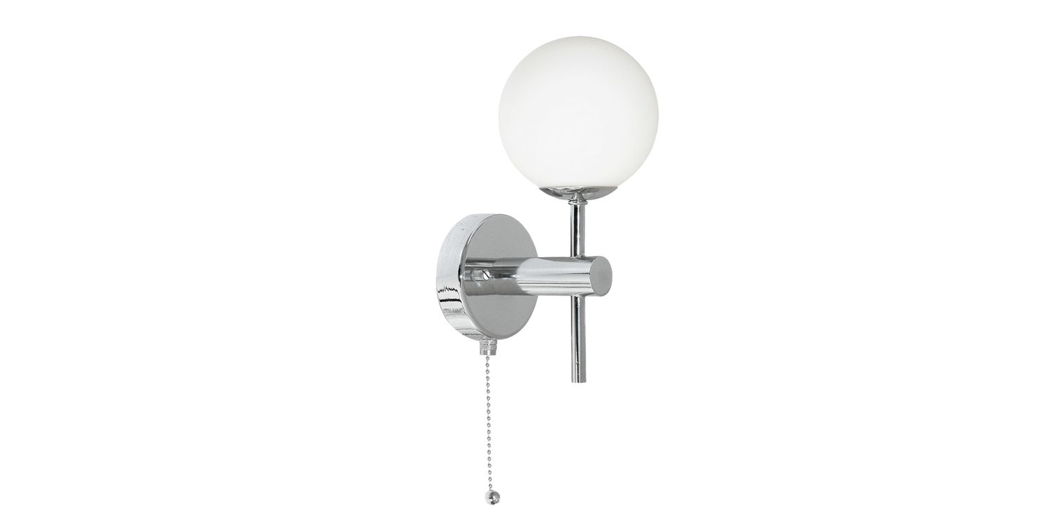 This IP44 Global chrome wall light with opal glass shades looks modern and stylish in any bathroom or kitchen. The sleek chrome finish fitting features a spherical opal glass shade, which provides an elegant source of light. It is also fully splashproof and comes with an attractive pull cord switch. Complete with LED lamps. LED's use up to 75% less energy and last up to 20 times longer than incandescent bulbs.