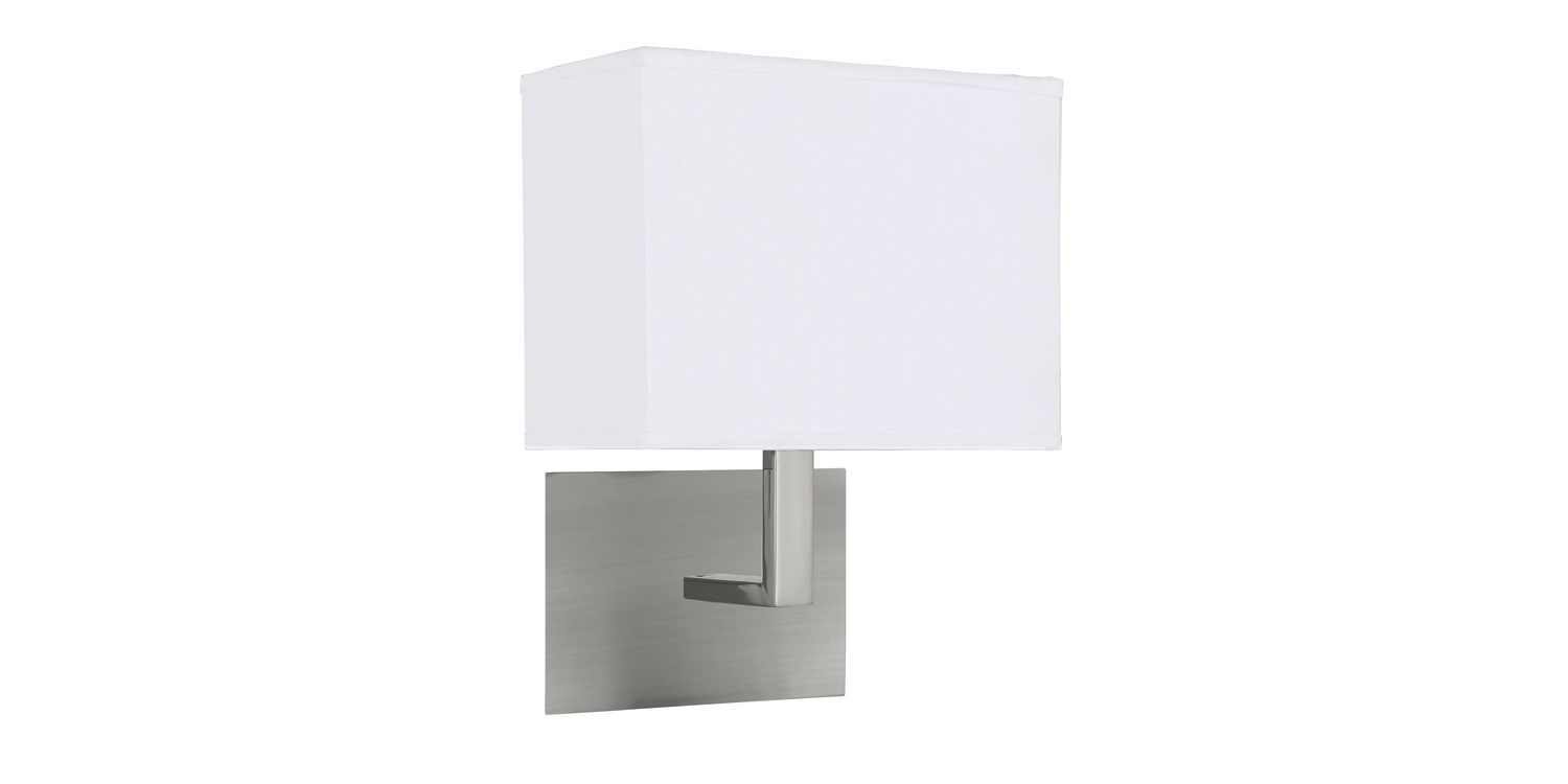 Hotel is wall light with a satin silver finish and white rectangular fabric shade. It has a rectangular satin silver finish wall plate and right angled arm, with a slim oblong white drum shade above. It provides a nice ambience and is controlled by a handy rocker switch. 260mm H x 200mm W 260mm Total Height Bulb Type- E27 Not included