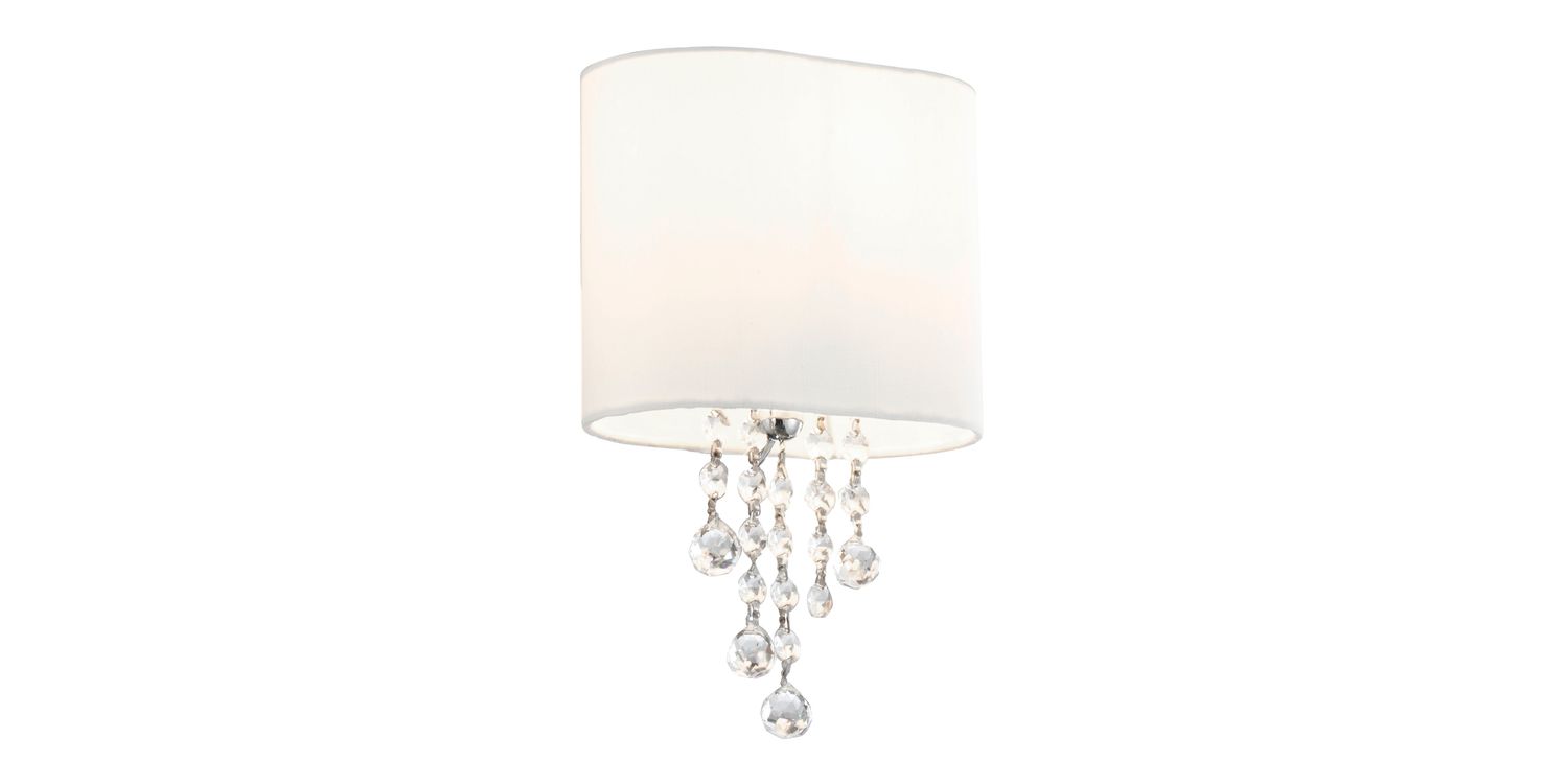 This Nina chrome wall light with crystal beads and white fabric shade is elegant and sophisticated. The large oval shaped shade is made from quality white fabric, and features matching spherical crystal droplets hanging gracefully from its centre. It comes with a handy rocker switch and looks stunning in any corner of your home. 300mm H x 180mm W 300mm Total Height Bulb Type- E14 Not Included