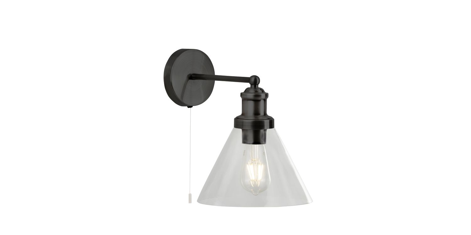 Perfectly suited above bedside tables or a kitchen space, the Pyramid Wall light is a classic design with a modern twist. Designed in a black metal finish with clear glass shades, this product is a great choice for anyone wanting to update their interior. 250mm H x 190mm W 250mm Total Height Bulb Type- E27 Not included