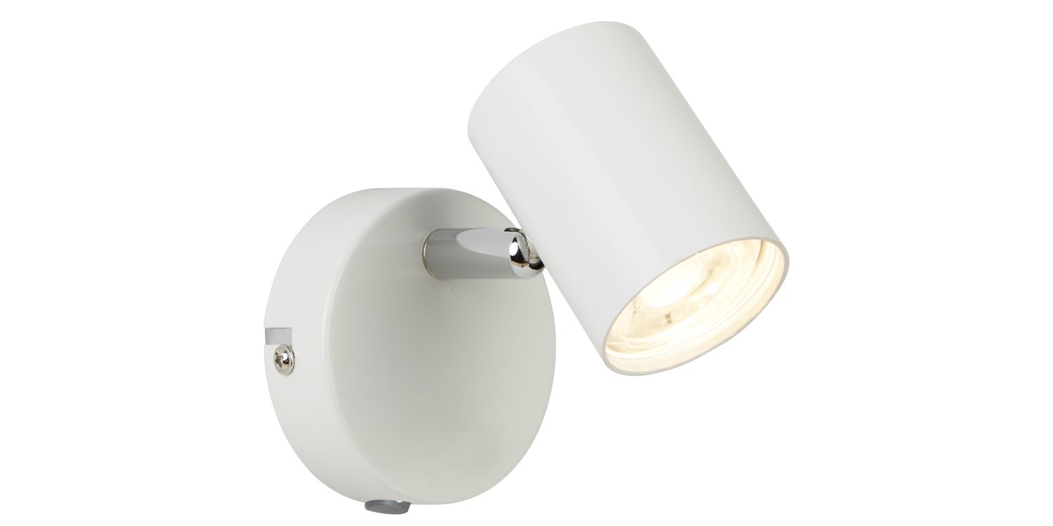 Emphasise any area in the home by using this Rollo cylinder head spot light wall light. Mount the white fitting onto the walls of any hallway, living room or bedroom and then adjust the direction of the light depending on preference. The on/off switch on the wall plate allows for ease of use, and the neutral colourway means this spotlight will work with many decor styles. 100mm H x 90mm W 100mm Total Height Bulb Type- LED Intergrated